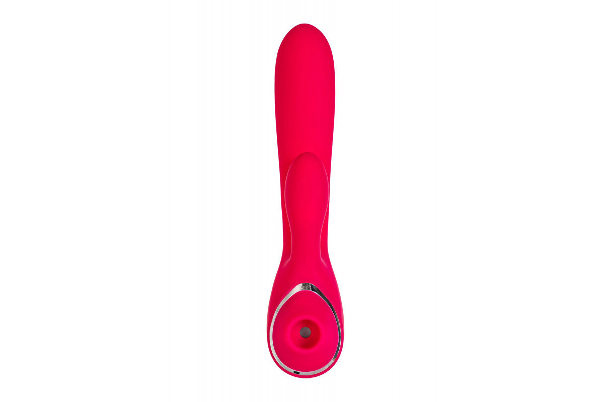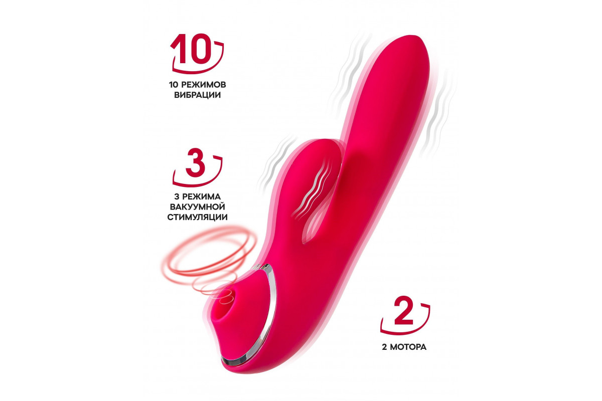 Красный вибратор c клиторальной и вакуумной стимуляциями Doobl - 20 см.