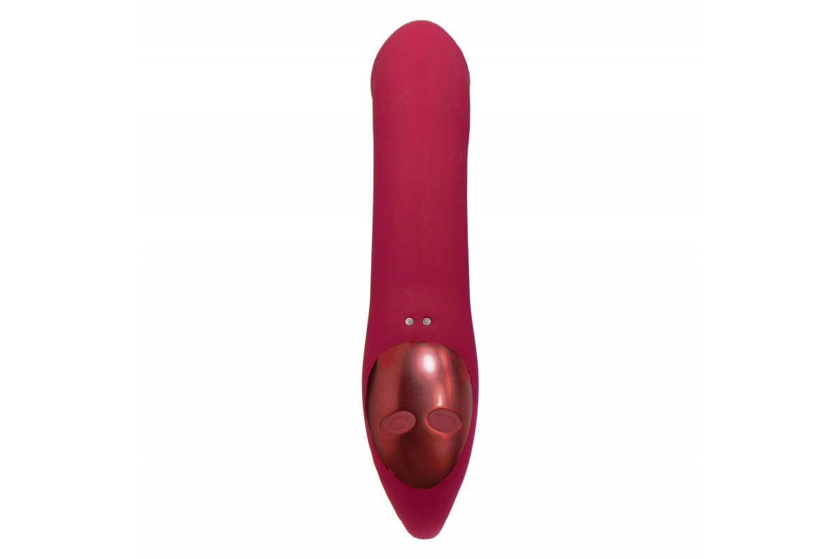 Красный вибратор Indira с гибким стимулятором клитора и нагревом — 18 см