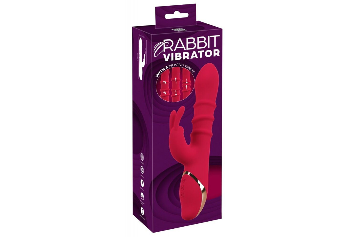 Эффектный красный вибратор-кролик с 3 подвижными кольцами – идеальный выбор для интимных побуждений