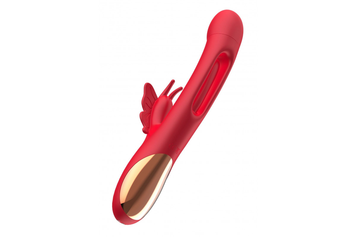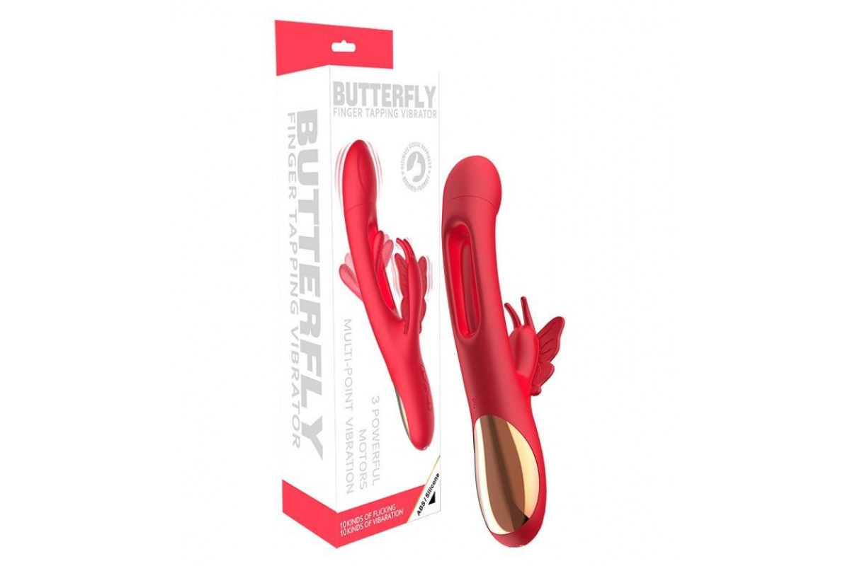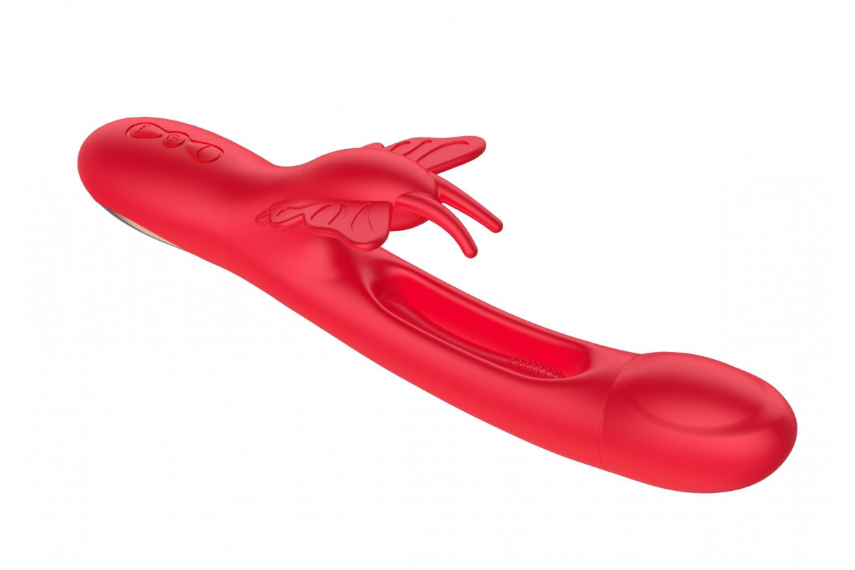 Красный вибратор-кролик с функцией фингеринга – 25,5 см