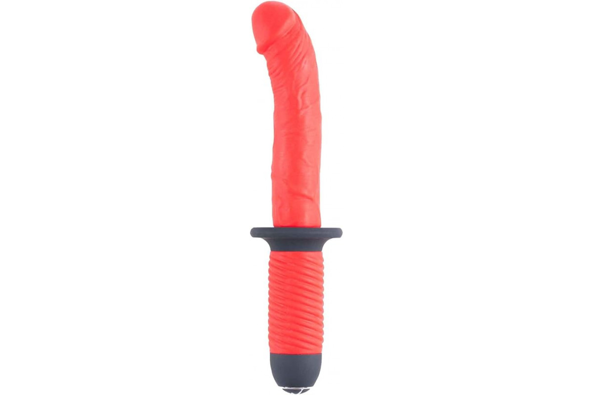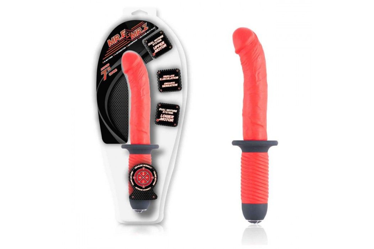 Красный вибратор с двумя моторами и рукоятью — интенсивное удовольствие и максимальный комфорт