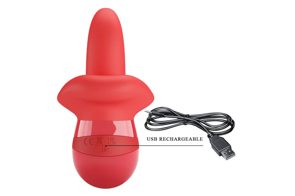 Красный вибратор с подвижным язычком Obelia — уникальный аксессуар для незабываемых ощущений