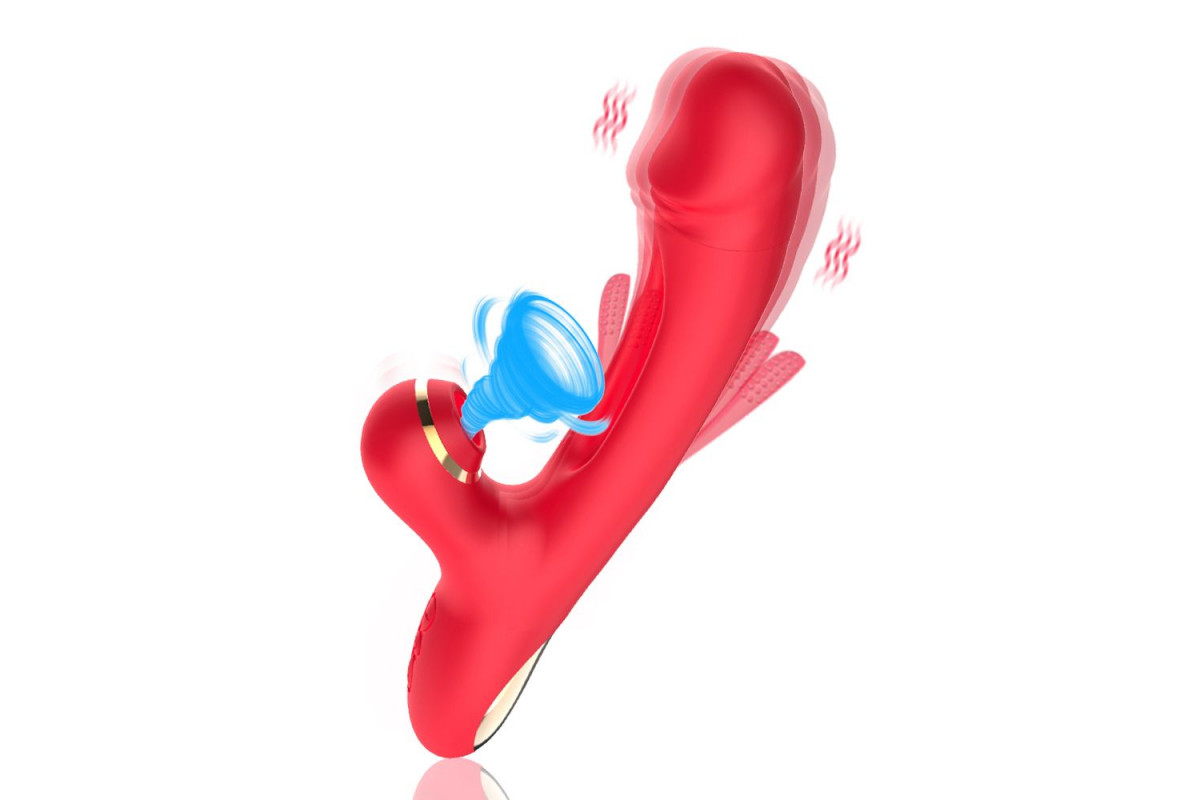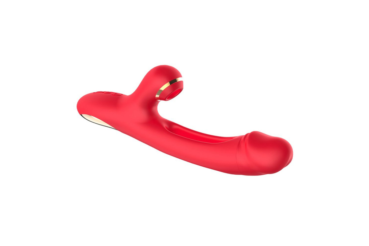 Красный вибратор с вакуумной стимуляцией клитора и функцией фингеринга – 24 см