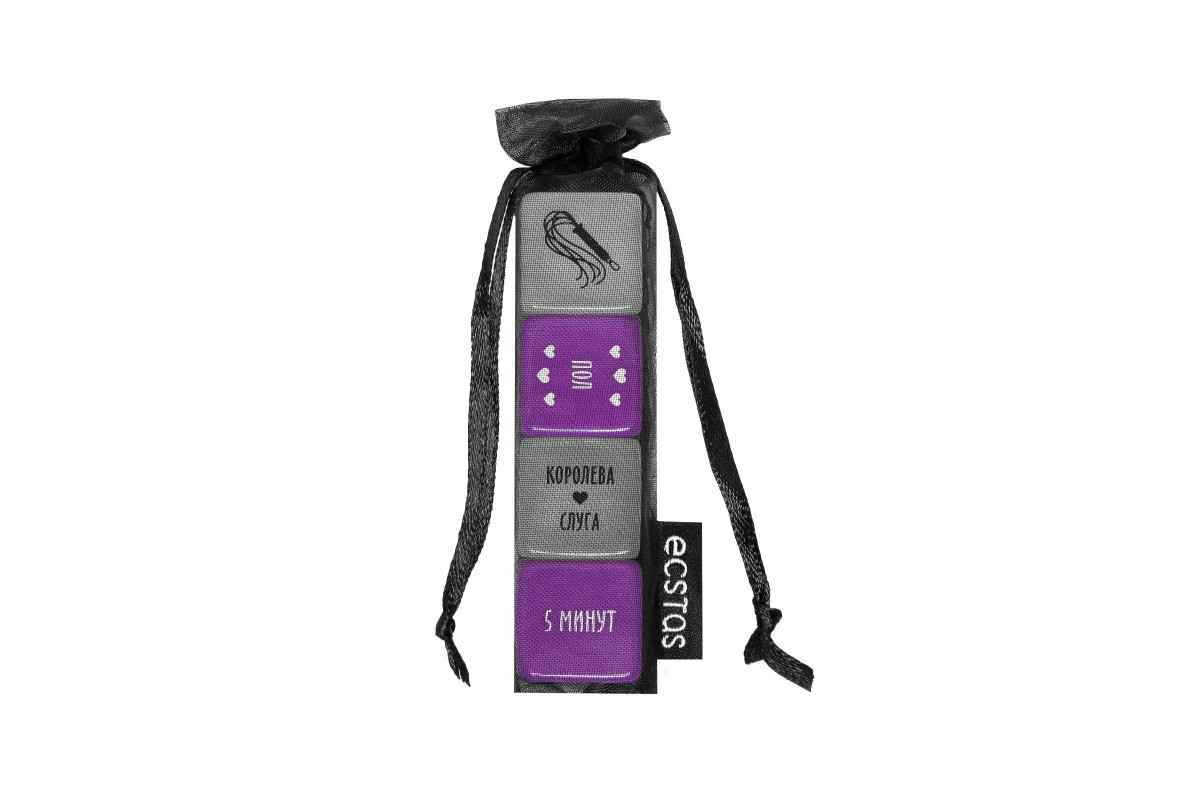 Тогда этот набор - то, что вам нужно. Внутри вас ждут 4 кубика. Первый определит роли, второй - место, третий - атрибут, который нужно использовать, а четвёртый - время ласки.И что с этим делать? Просто по очереди или одновременно бросьте кубики и воплотите в жизнь указанное. В комплекте: 2 неоновых кубика, 2 фиолетовых кубика, мешочек для хранения.
