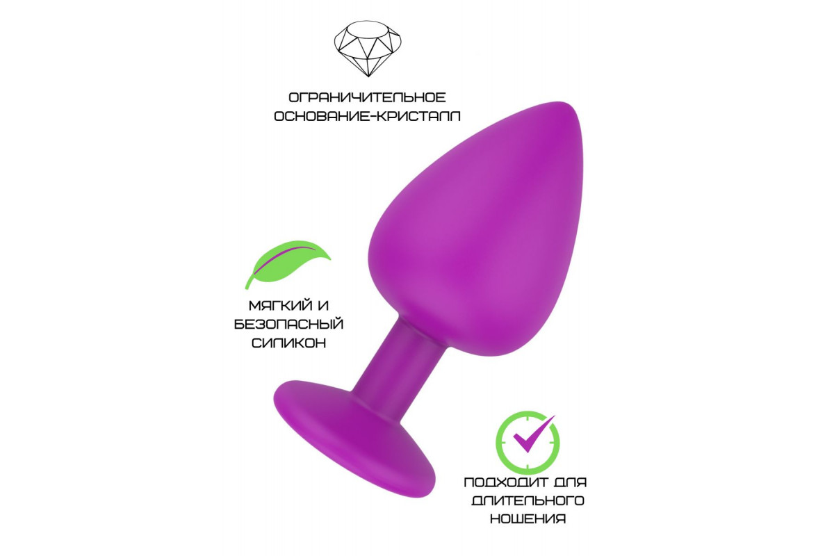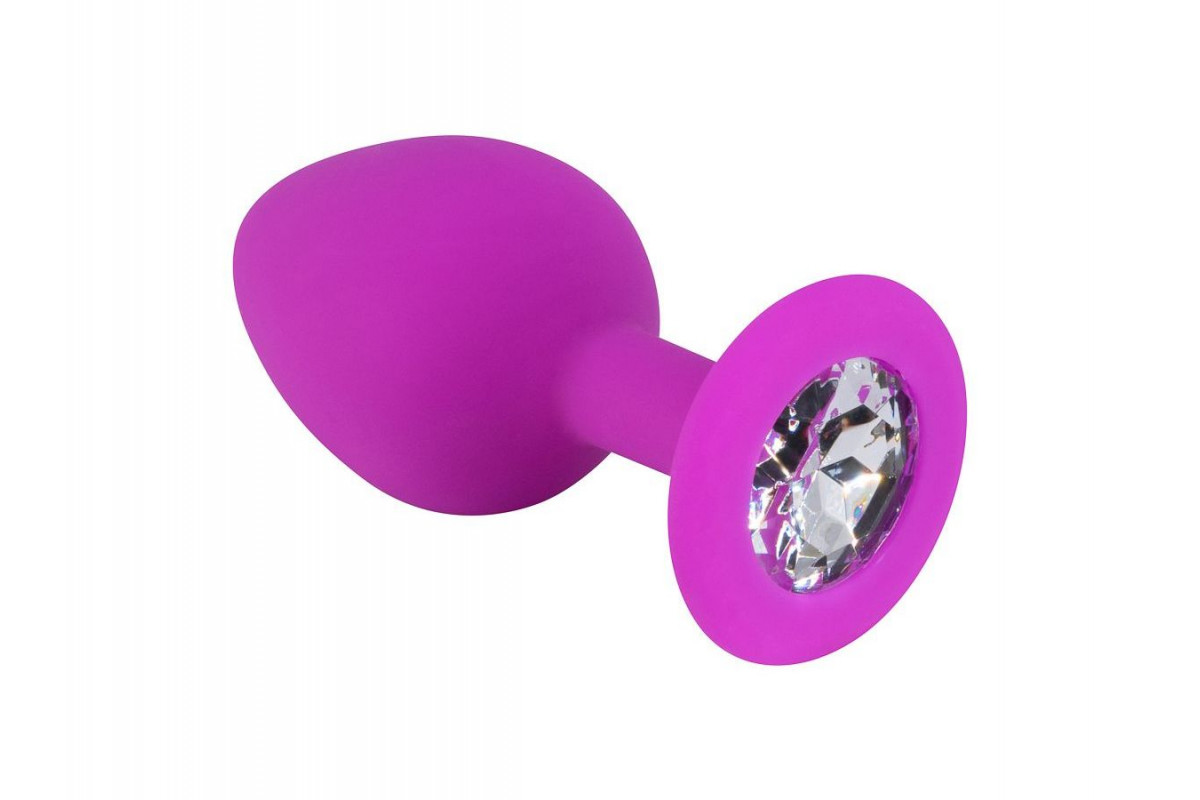 Лиловая средняя силиконовая пробка с прозрачным кристаллом