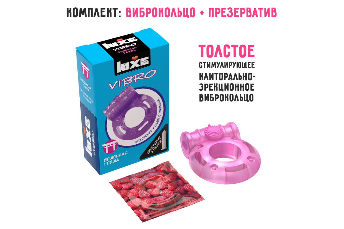 Лиловое эрекционное виброкольцо Luxe VIBRO «Бешеная Гейша» + презерватив — ваше новое удовольствие