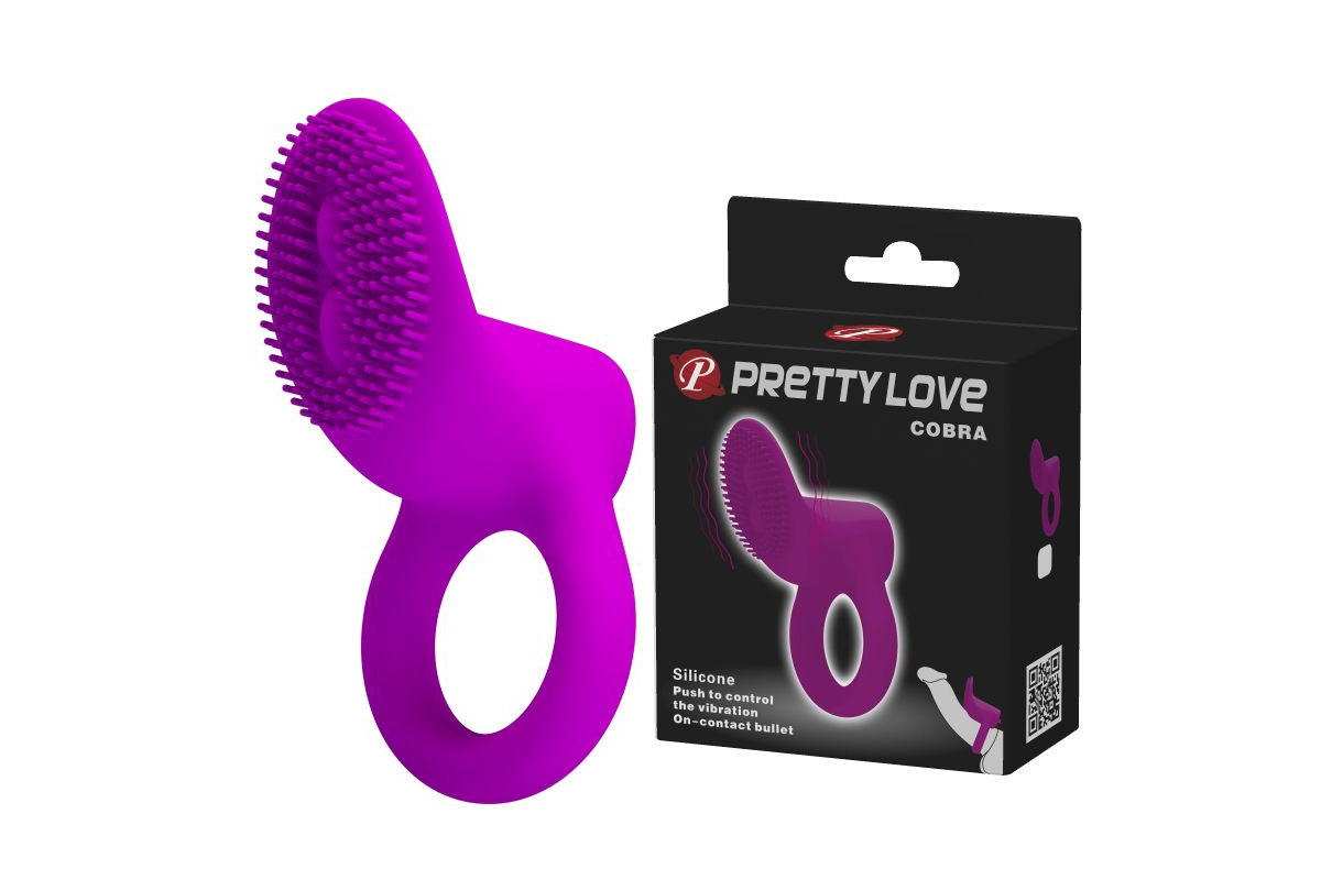 Лиловое эрекционное виброкольцо со стимулятором клитора Cobra