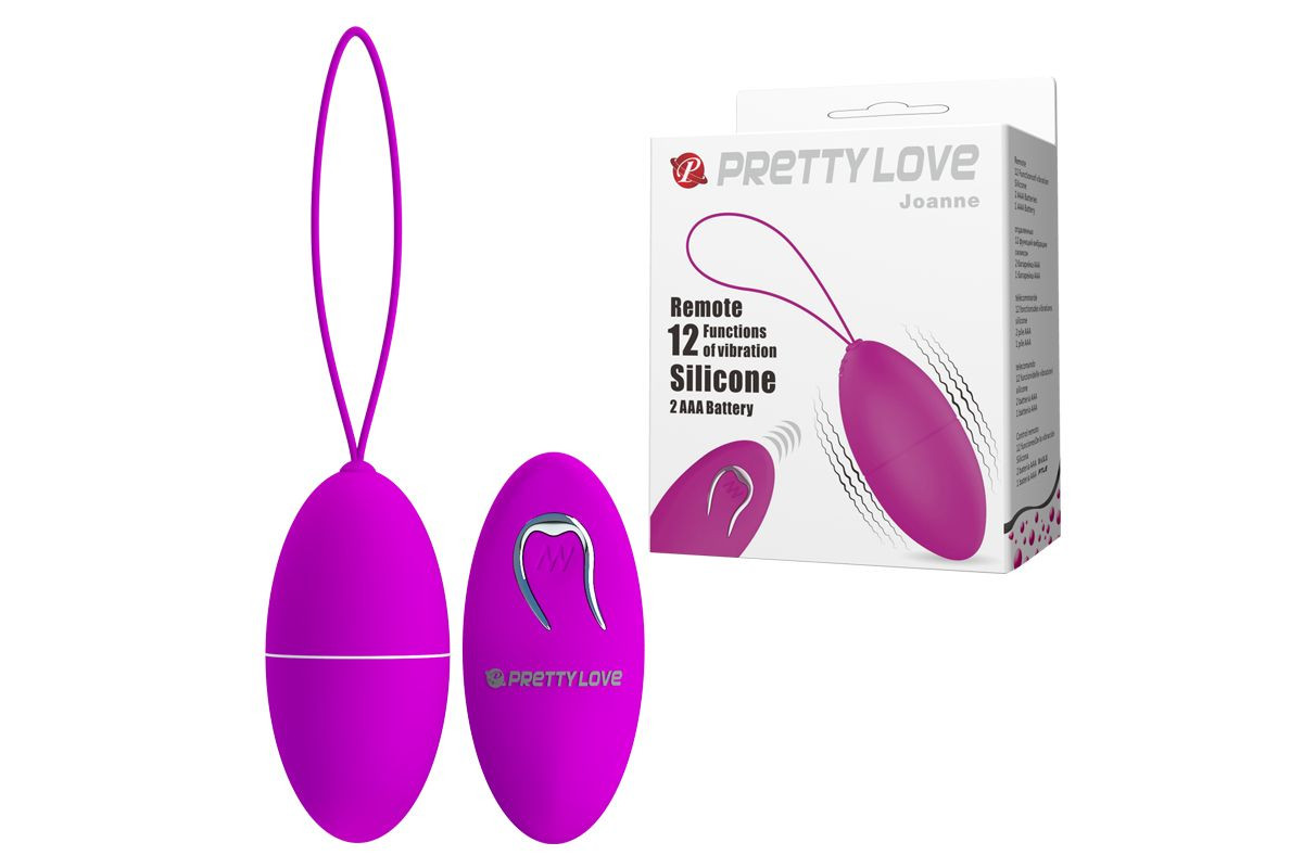 Лиловое гладкое виброяйцо с пультом ДУ Joanne — новый уровень удовольствия