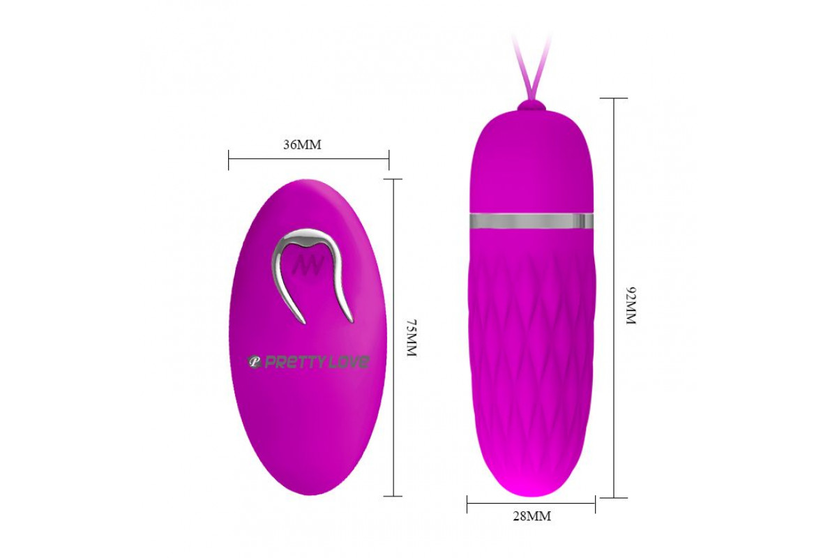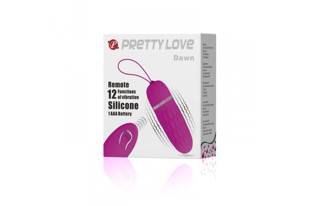 Виброяичко изготовлено из силикона, имеет рельефную сетку на поверхности для лучшего массажа стеночек лона (или клитора, сосков - если вам того захочется). У Dawn есть шнурочек для извлечения, а также 12 режимов вибрации, переключаемых кнопкой на пульте ДУ. Дальность действия пульта - 8 метров.