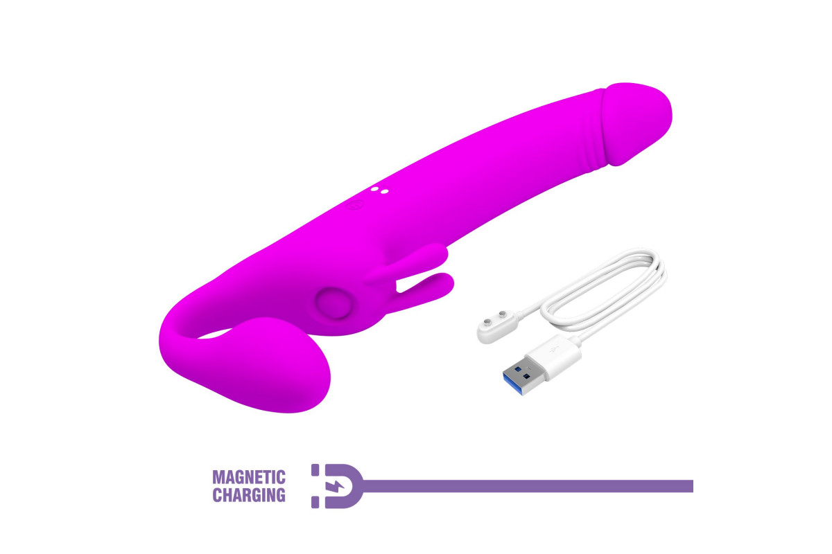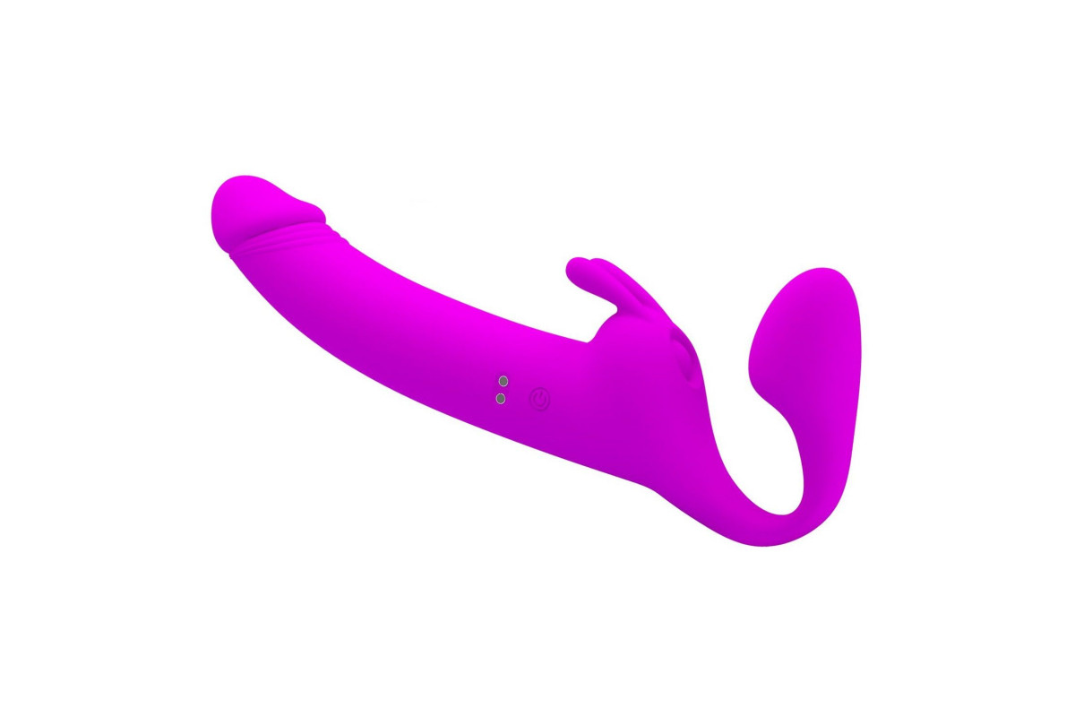 Лиловый безремневой страпон с вибрацией Zanini — воплощение страсти и комфорта