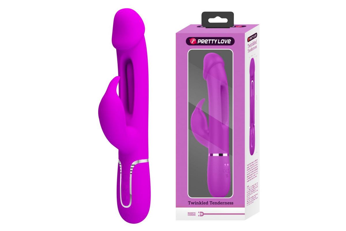 Лиловый вибратор-кролик с функцией фингеринга Kampas – 23,2 см