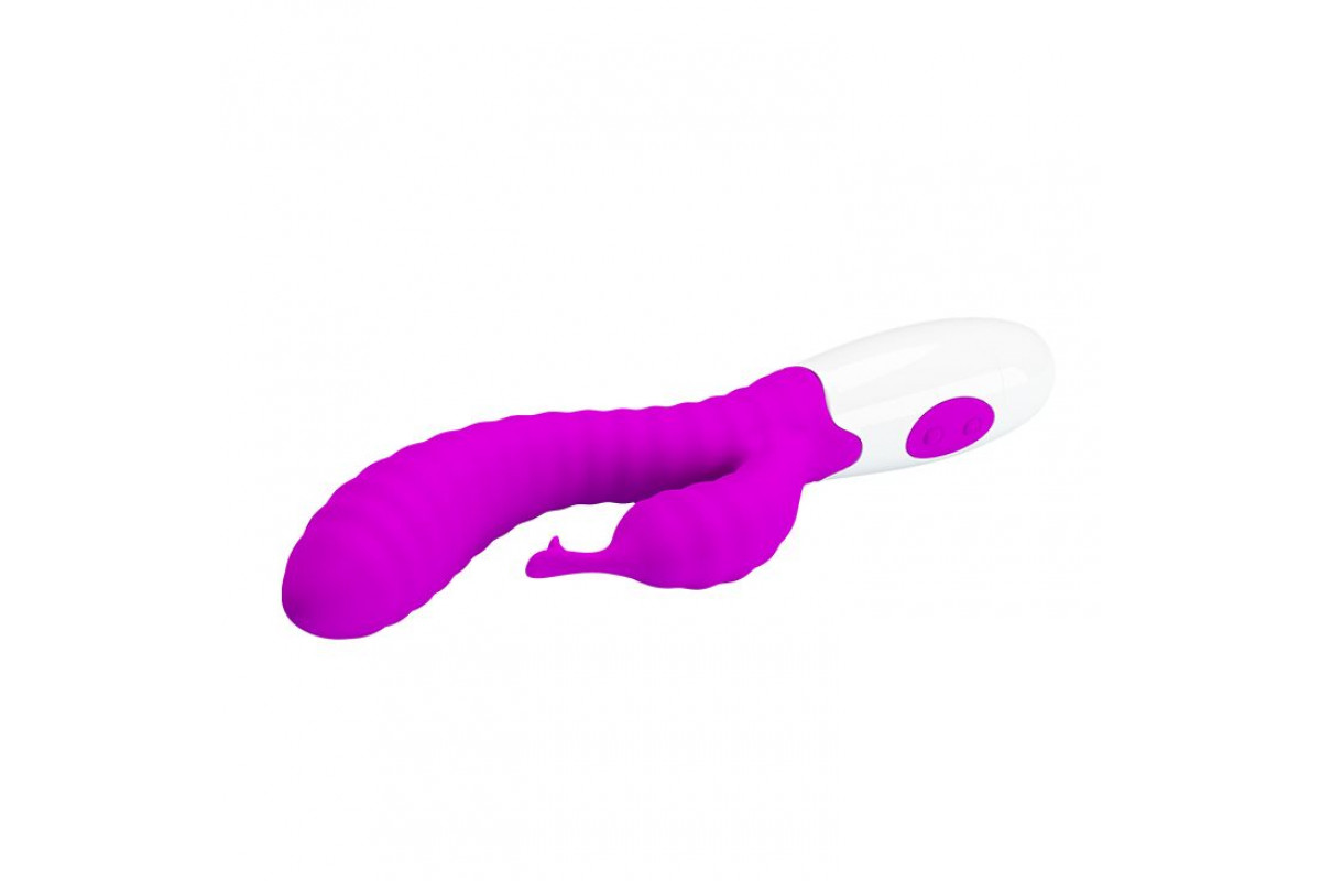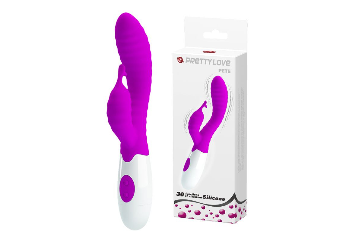 Лиловый вибратор с клиторальным отростком и ребрами Pete — незабываемый опыт удовольствия