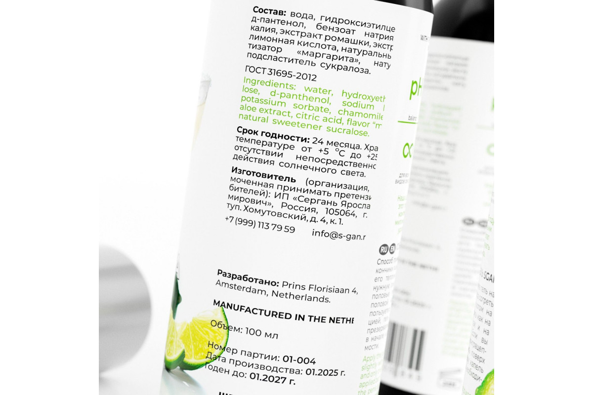 - Состав: вода, гидроксиэтилцеллюлоза, д-пантенол, бензоат натрия, сорбат калия, экстракт ромашки, экстракт алоэ, лимонная кислота, натуральный ароматизатор Маргарита , натуральный подсластитель (сукралоза).