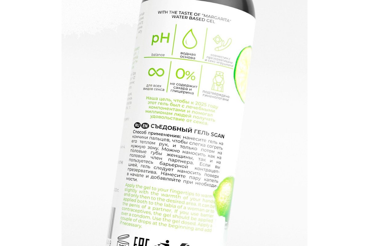 Вкусовая линейка лубрикантов SGAN разработана с учетом физиологии, совмещает в себе вкус и аромат, при этом сохраняет все регенерирующие свойства классического лубриканта. Не оставляет липкости, без химического привкуса, не содержит сахара и калорий. Для сладости добавлен натуральный подсластитель - сукралоза. Абсолютно безопасен для проникновения и при проглатывании.