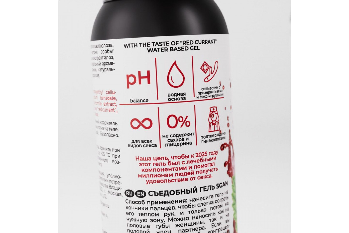 Состав — вода, гидроксиэтилцеллюлоза, д-пантенол, бензоат натрия, сорбат калия, экстракт ромашки, экстракт алоэ, лимонная кислота, натуральный ароматизатор Красной смородины, натуральный подсластитель (сукралоза).. Используемые материалы предназначены для интимного применения. Для максимального комфорта рекомендуется соблюдать инструкцию и правила ухода.