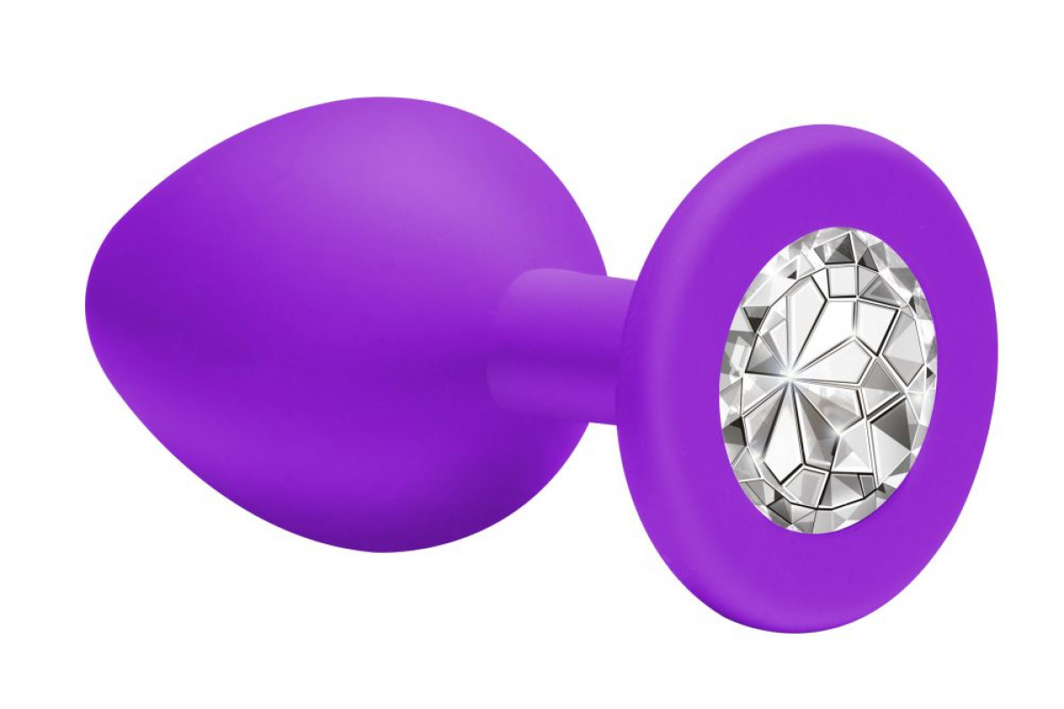 Малая фиолетовая анальная пробка Emotions Cutie Small с прозрачным кристаллом - 7,5 см.