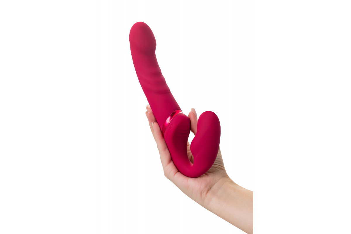Малиновый безремневой страпон Lapis — наслаждение без границ