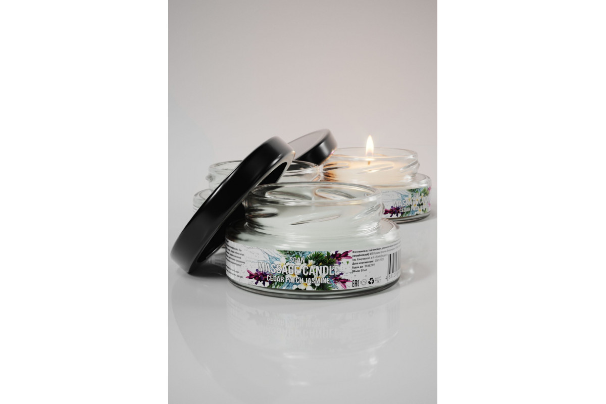 Массажная свеча с ароматом кедра, пачули и жасмина SGAN в стеклянной банке — это натуральное средство для расслабления, ухода за кожей и создания романтической атмосферы. Свеча изготовлена из 100% кокосового воска с добавлением ароматического масла янтарного мусса и хлопкового фитиля, что обеспечивает безопасное и чистое горение. При нагревании свеча превращается в тёплое массажное масло, которое глубоко увлажняет, питает и смягчает кожу, делая её шелковистой и ухоженной. Приятный аромат кедра, пачули и жасмина наполняет комнату уютом и гармонией.