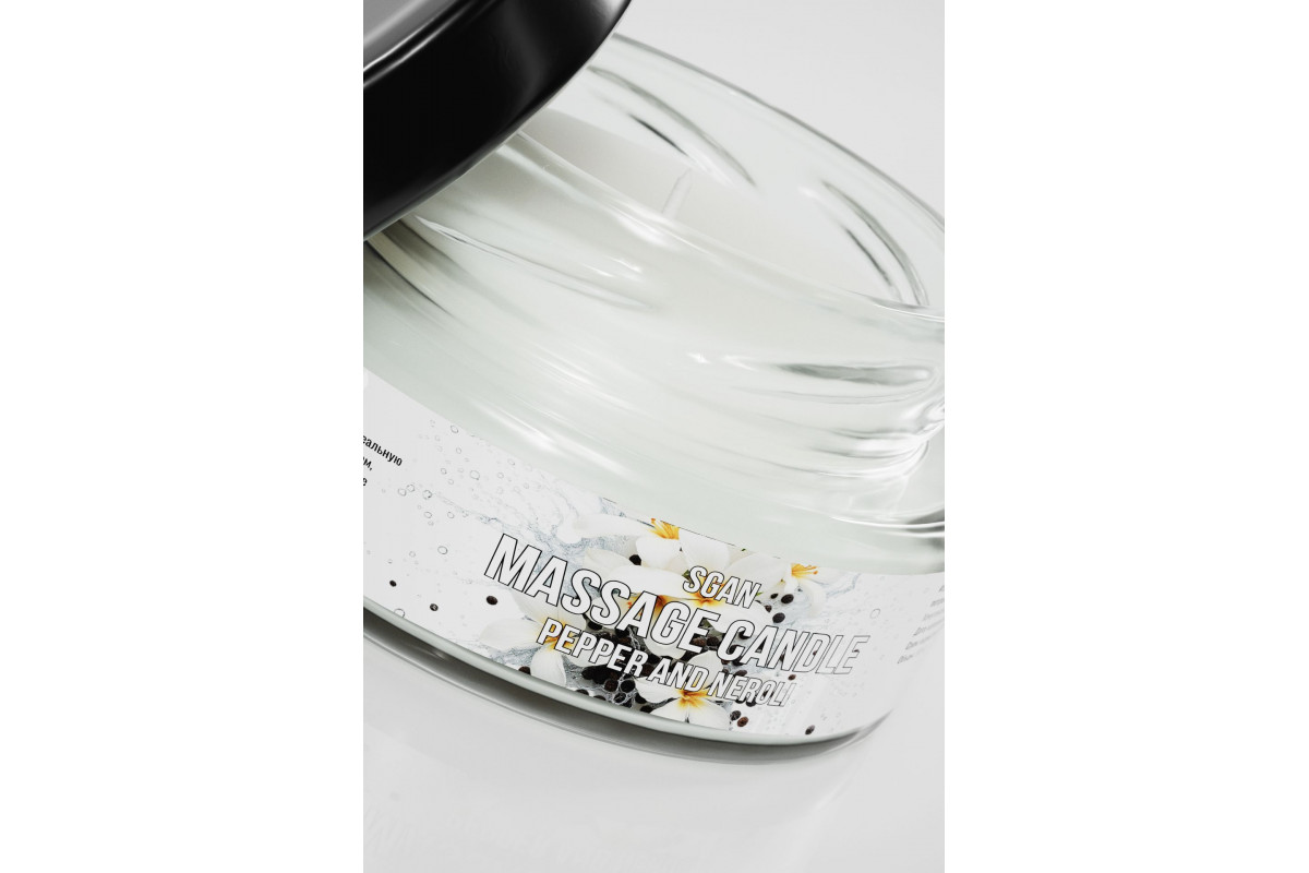 Массажная свеча с ароматом переца и нероли SGAN в стеклянной банке — это натуральное средство для расслабления, ухода за кожей и создания романтической атмосферы. Свеча изготовлена из 100% кокосового воска с добавлением ароматического масла перца и нероли и хлопкового фитиля, что обеспечивает безопасное и чистое горение. При нагревании свеча превращается в тёплое массажное масло, которое глубоко увлажняет, питает и смягчает кожу, делая её шелковистой и ухоженной. Приятный аромат перца и нероли наполняет комнату уютом и гармонией.