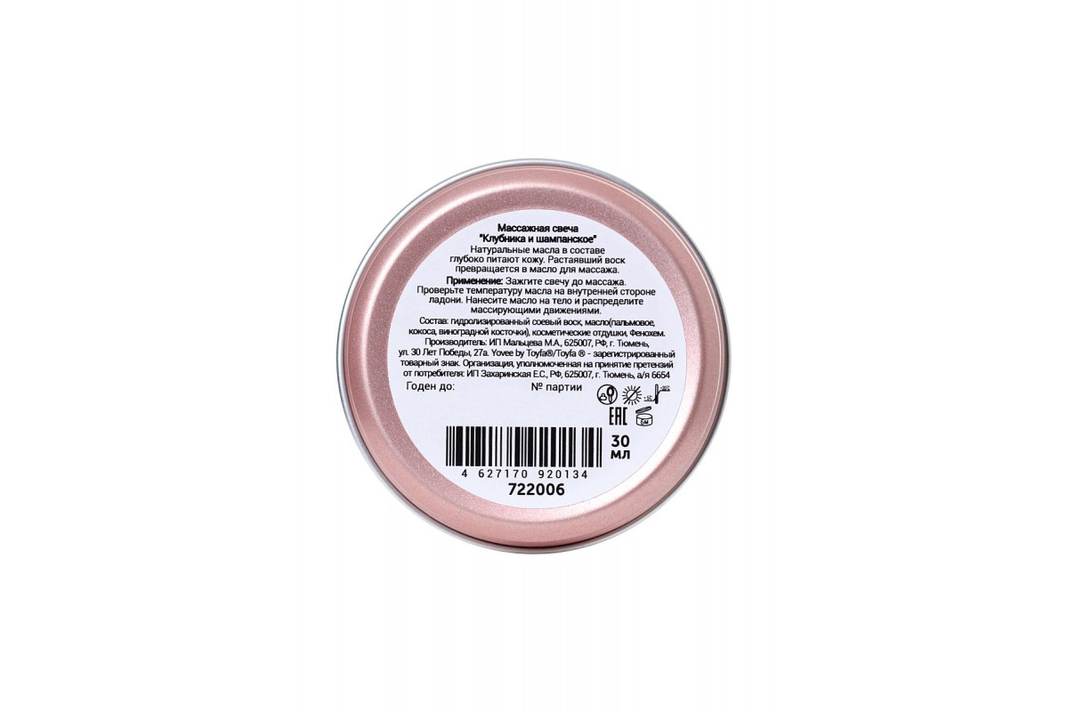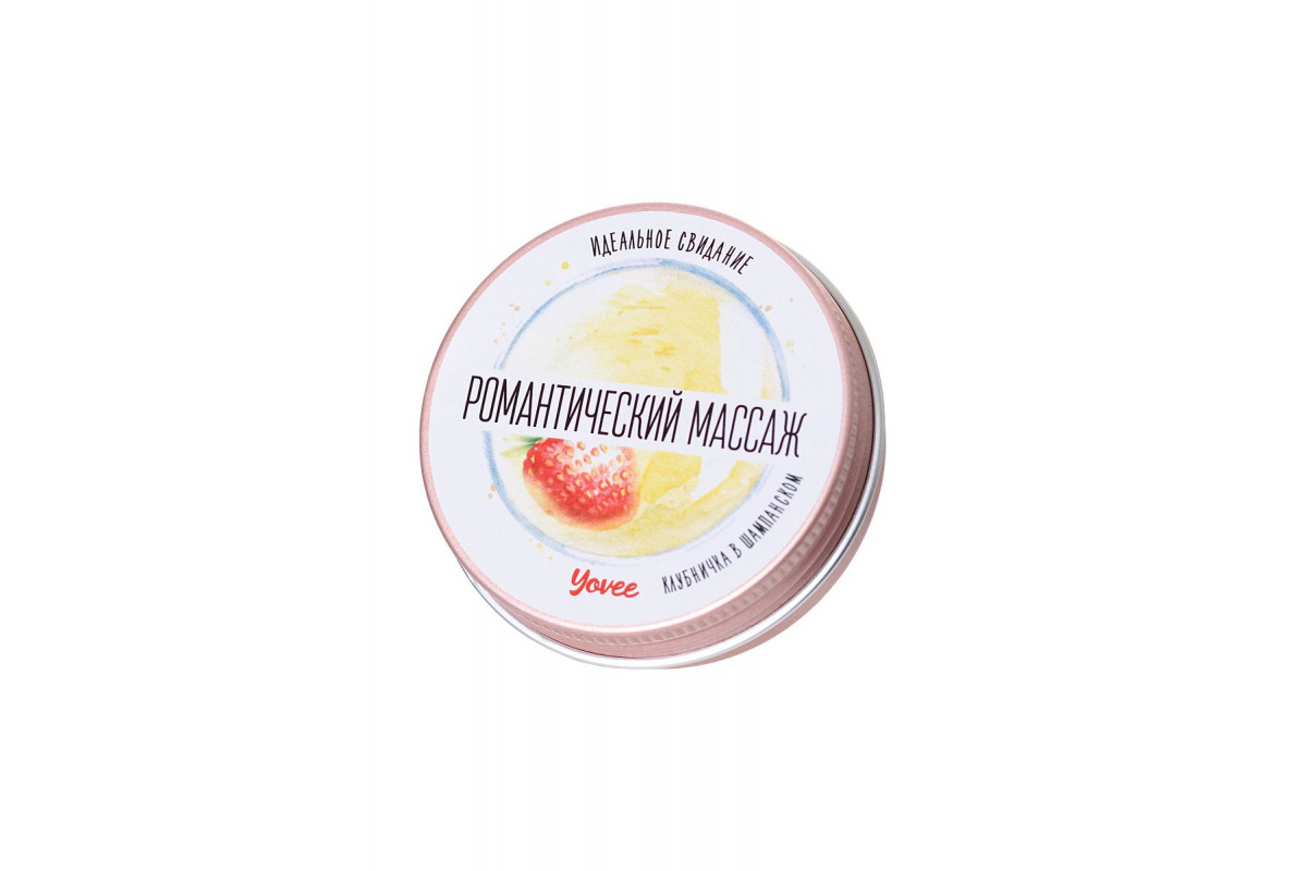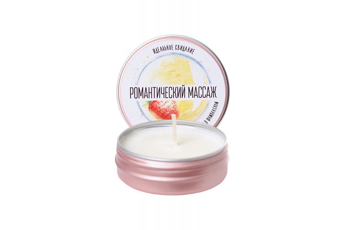 Массажная свеча «Романтический массаж» с ароматом клубники и шампанского - 30 мл.