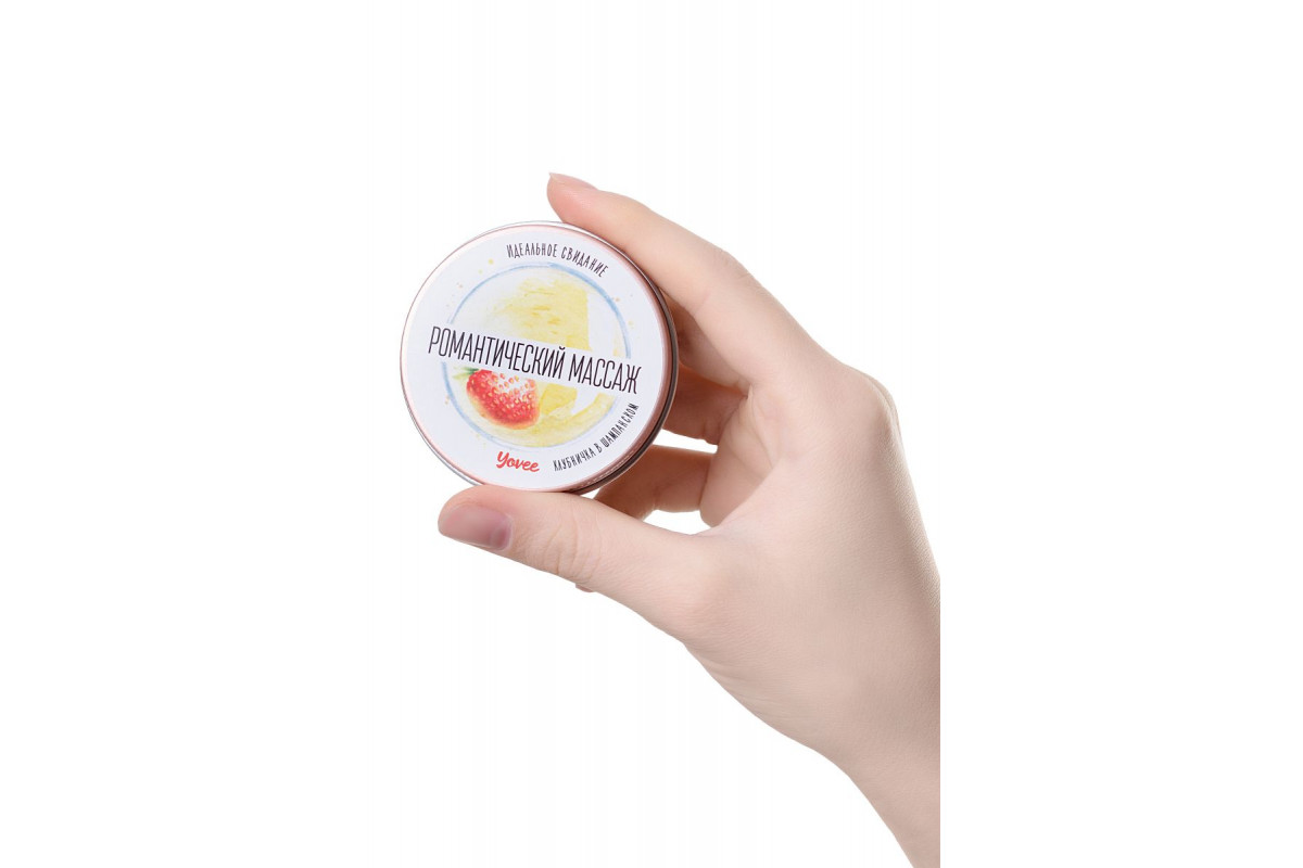 Натуральные масла в составе глубоко питают и увлажняют кожу. Растаявший воск превращается в масло для массажа. Свеча станет идеальным аксессуаром для романтического свидания. Идея для свидания: если у вас есть повод для праздника или просто игривое настроение - организуйте свидание со свежей клубникой и шампанским. Массажная свеча с таким же ароматом будет отличным продолжением свидания. Зажгите свечу и подождите, пока образуется масло. Лейте масло вдоль спины медленно, а затем начните с легких массирующих движений. Сделайте массаж своим обнаженным телом - так он станет еще более интимным и чувственным. Такое свидание останется в памяти надолго! Свеча подарит незабываемые ощущения, после которых вам гарантированы нежные и мягкие прикосновения!