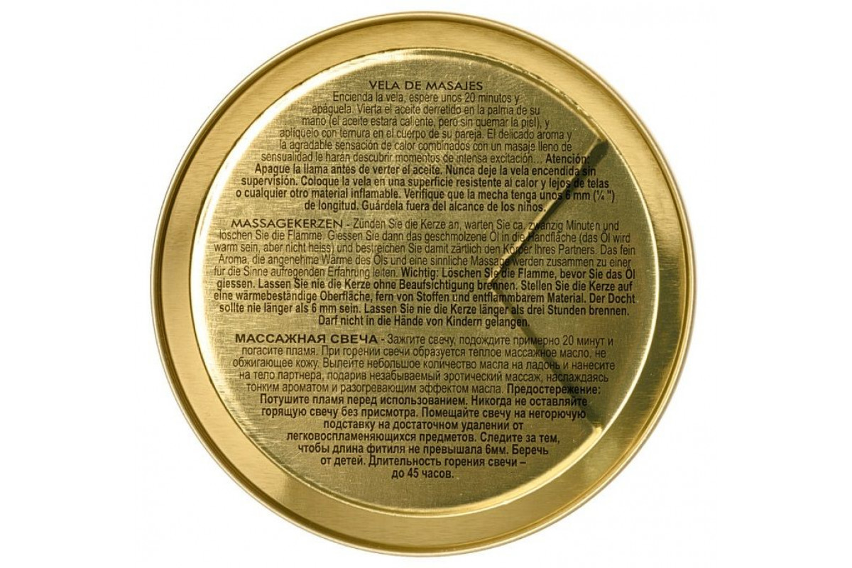 - Инструкция: Зажгите свечу, подождите примерно 20 минут, чтобы получить достаточное количество растопившегося масла для массажа. Погасите пламя, прежде чем вылить масло на ладонь. Поддерживайте длину фитиля 6 мм. Не оставляйте горящую свечу без присмотра.
