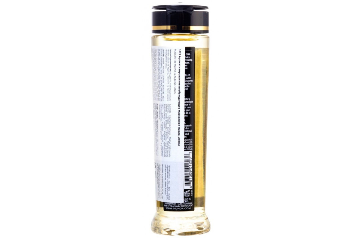 Это на 100 % натуральное масло с упоительным ароматом, легко скользит по коже, не оставляя жирной пленки. Запах массажному маслу придают эфирные масла и отдушки, что в отличие от большей части другой продукции SHUNGA, ароматизированной вкусовыми добавками, делает его несъедобным.