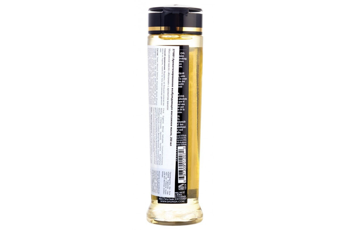 Это на 100 % натуральное масло с упоительным ароматом, легко скользит по коже, не оставляя жирной пленки. Запах массажному маслу придают эфирные масла и отдушки, что в отличие от большей части другой продукции SHUNGA, ароматизированной вкусовыми добавками, делает его несъедобным.