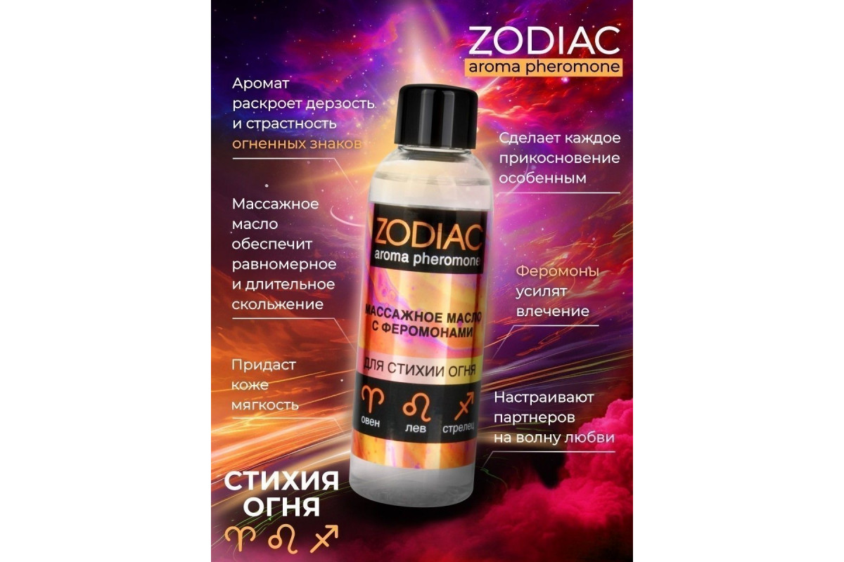 Погрузитесь в мир чувственных ощущений с массажным маслом ZODIAC Fire. Этот уникальный продукт создан для тех, кто ценит интимную гармонию и хочет усилить свои ощущения во время романтических моментов.