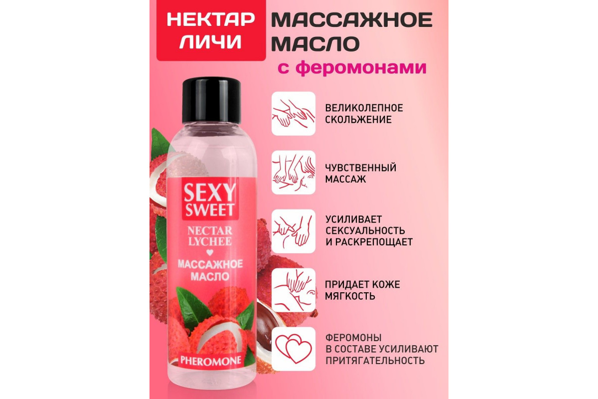 Массажное масло Sexy Sweet Nectar Lychee с феромонами и ароматом личи — создайте особую атмосферу страсти