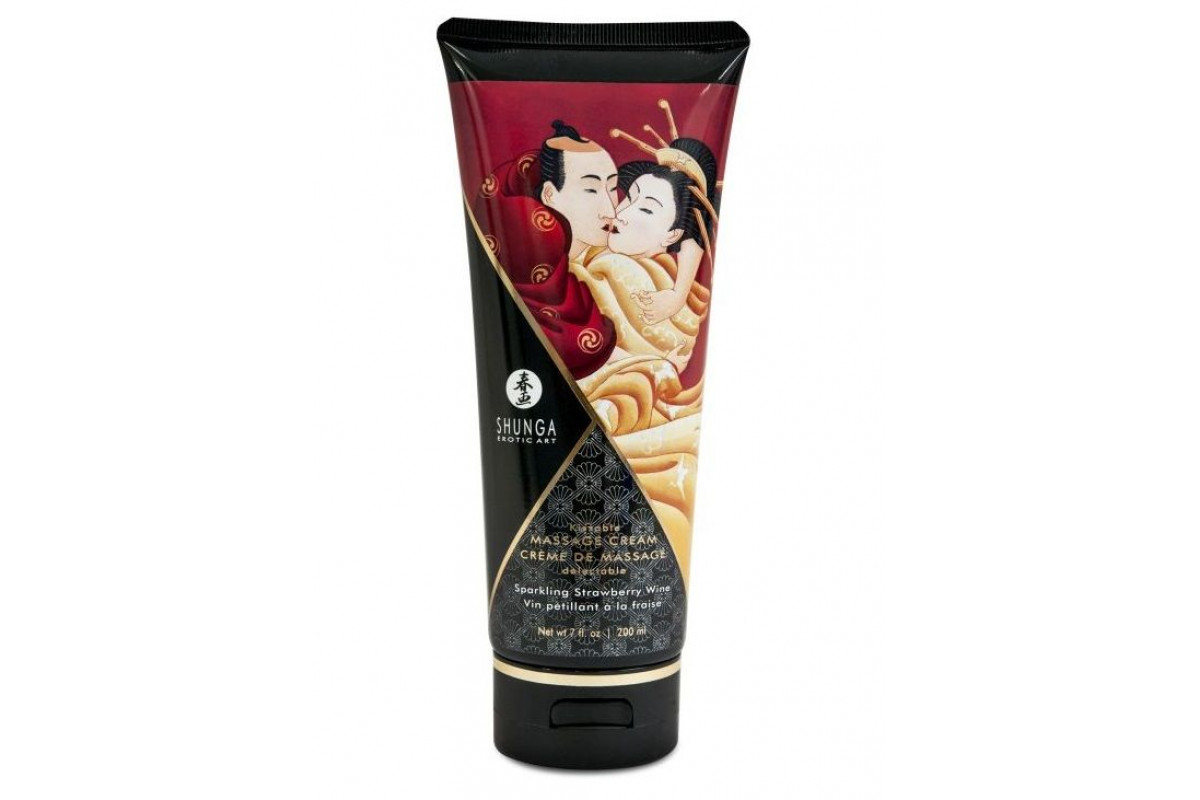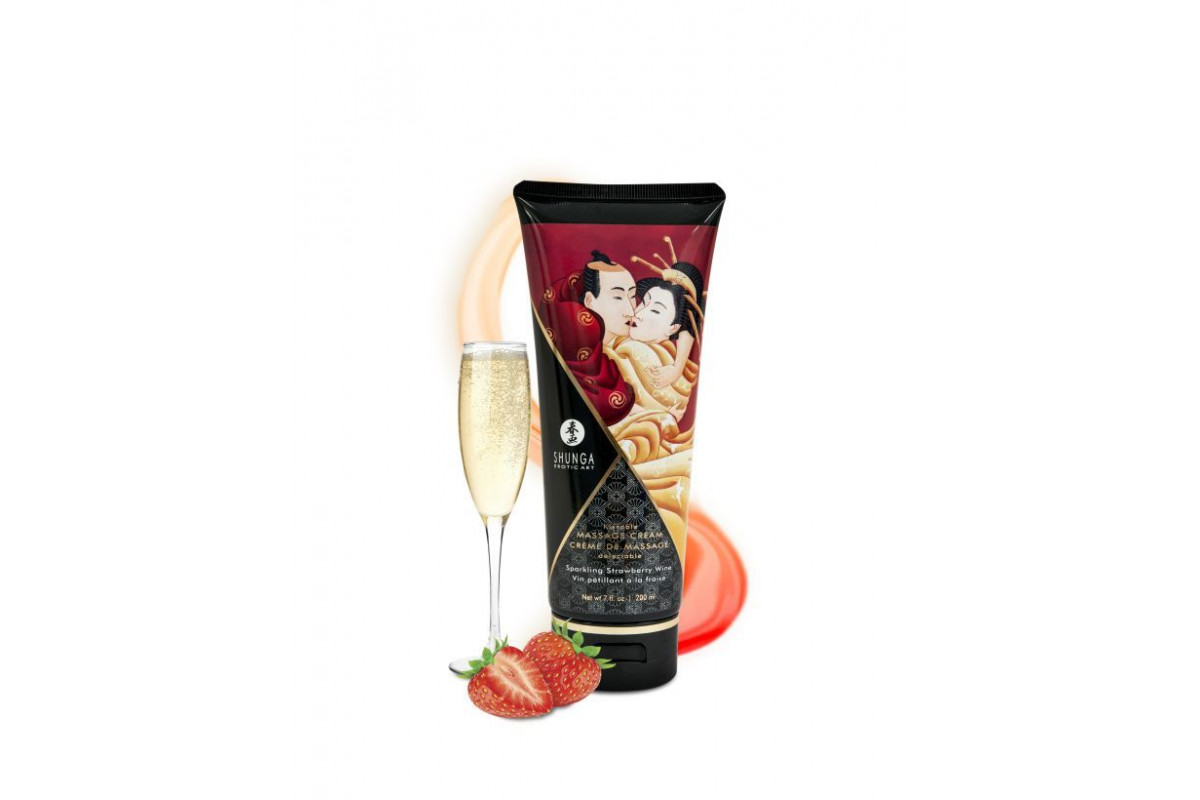 Подарите себе и своему партнеру незабываемые моменты с массажным кремом Sparkling Strawberry Wine — воплощение страсти и нежности в каждой капле.