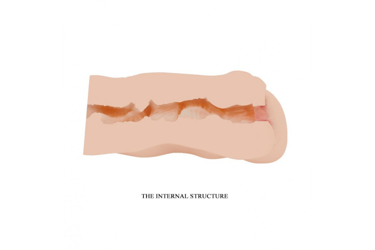 Внутренняя часть имеет рельефную поверхность для интенсивной стимуляции. Наружная часть также имеет рельефную поверхность для большего удобства и исключения скольжения в руке. Нежная, очень податливая, с нежно-розовым цветом половых губ.
