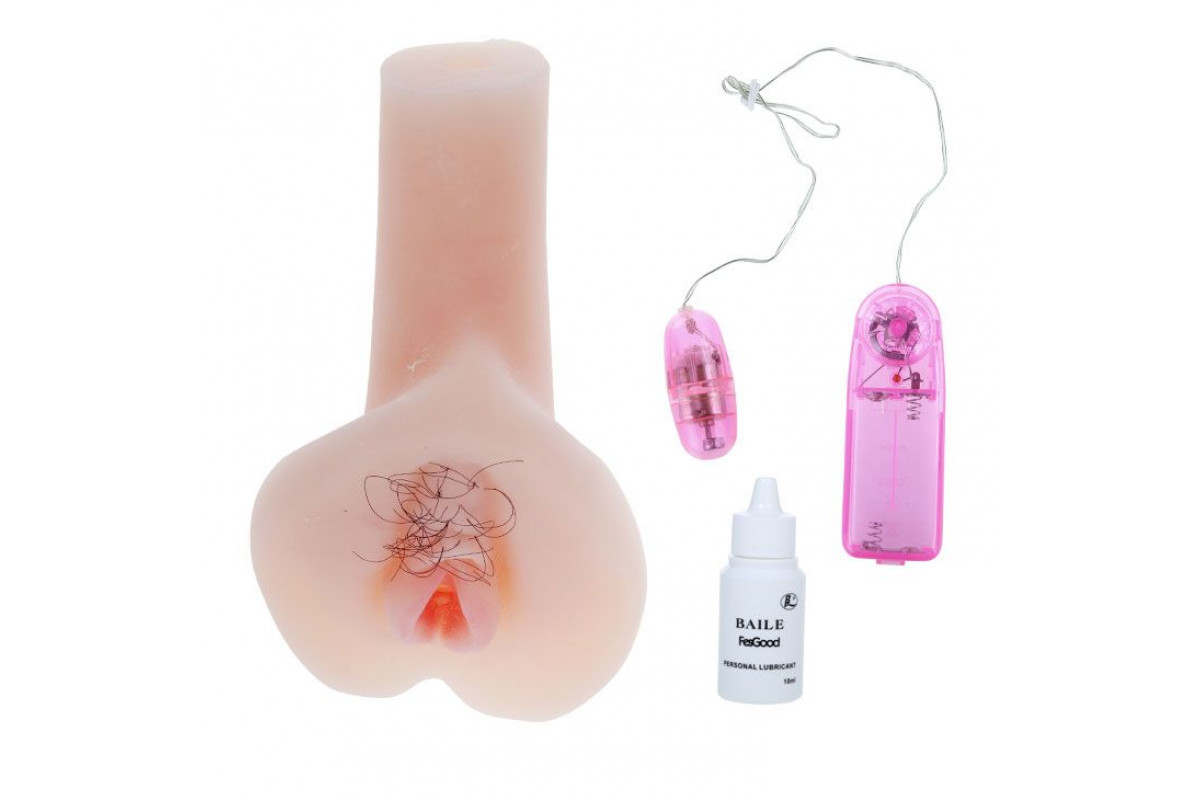 Розовые губки мастурбатора так и манят Вас войти в него. Над чувственным клитором несколько курчавых волосиков. Батарейки в комплект не входят.