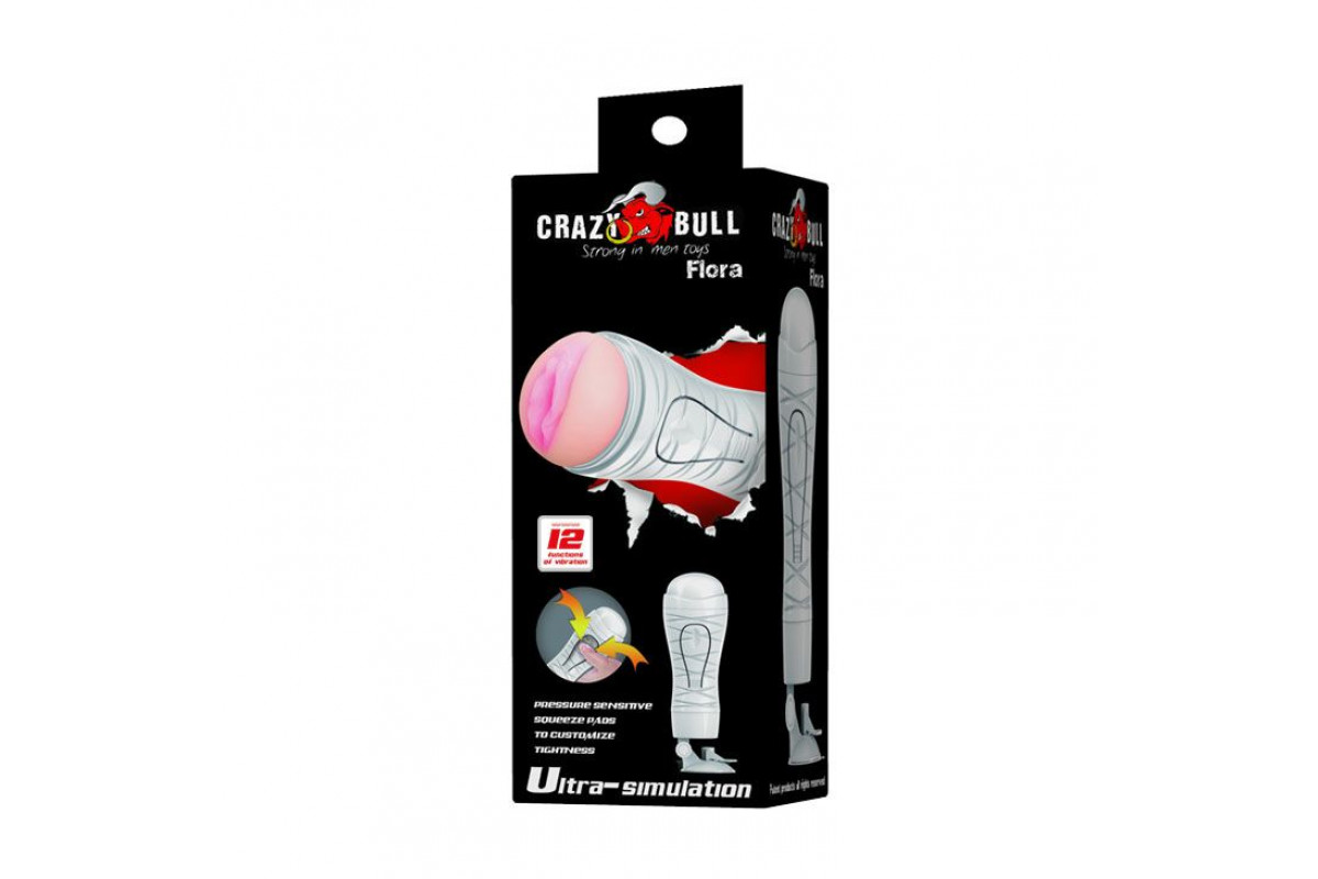 Мастурбатор-вагина Flora White с присоской и 12 режимами вибрации