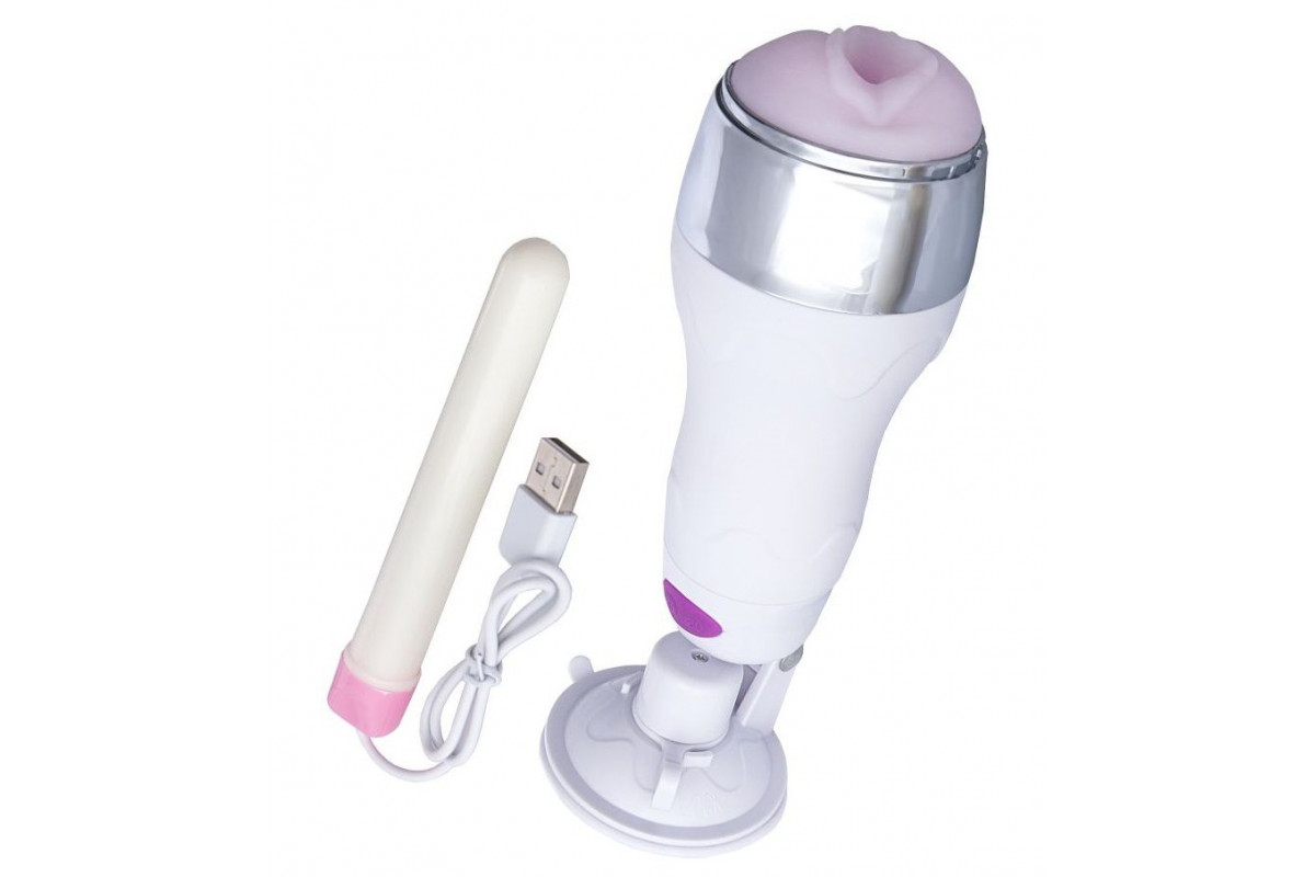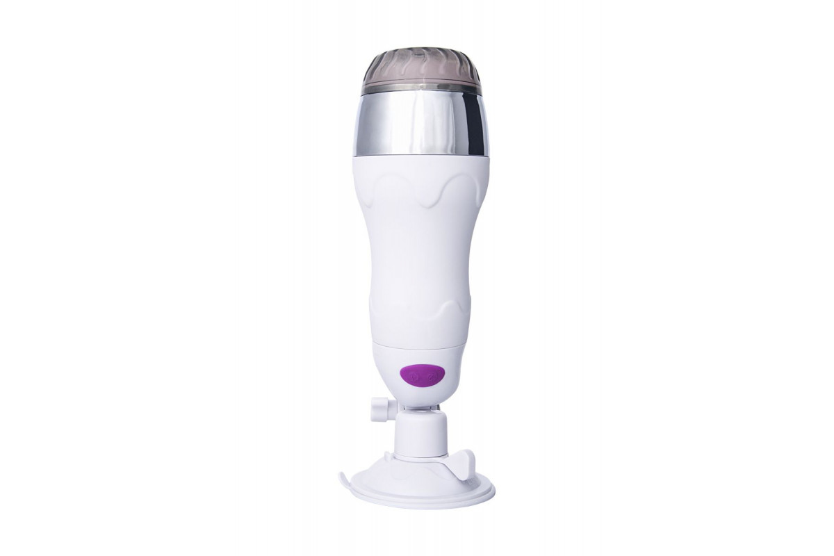 Мастурбатор-вагина в белой колбе с присоской и функцией нагрева