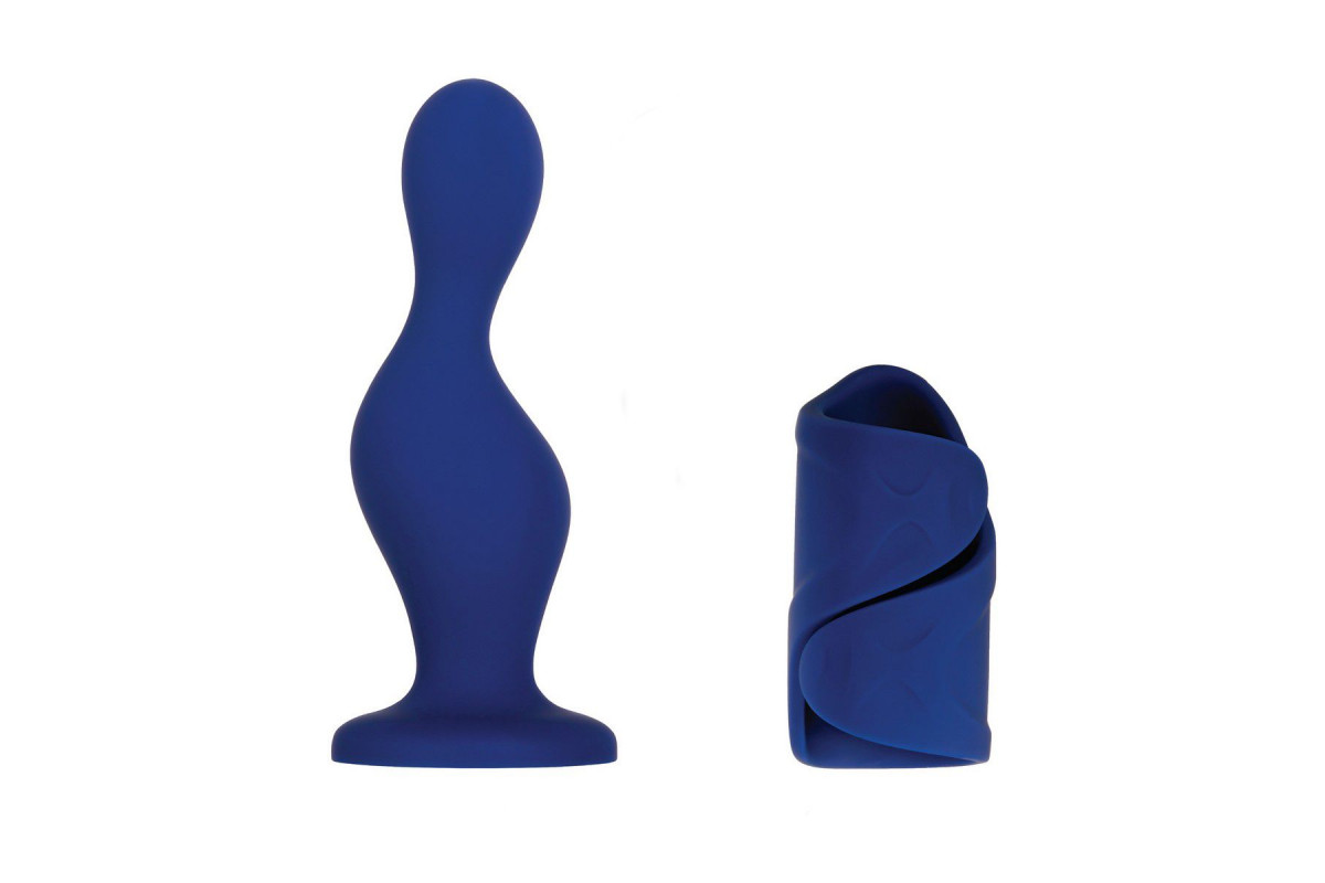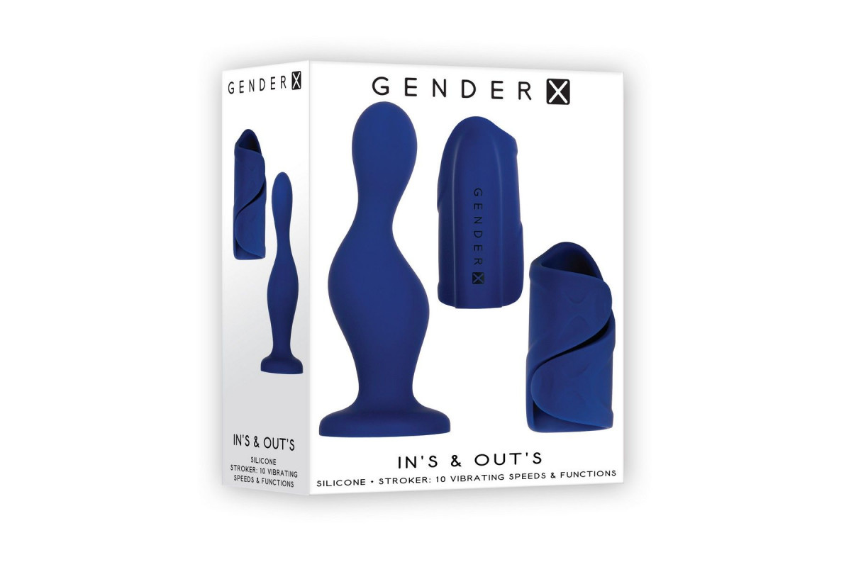Мужской набор в синем цвете In s & Out s: вибромастурбатор и анальный плаг