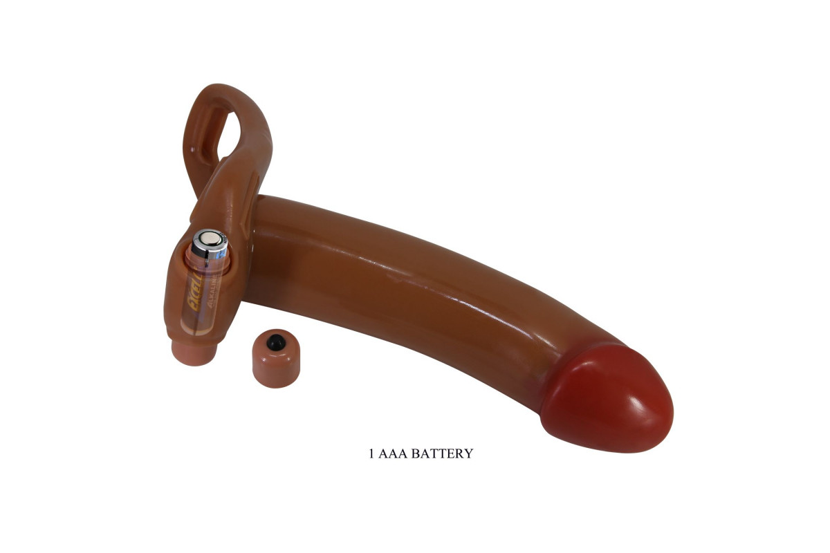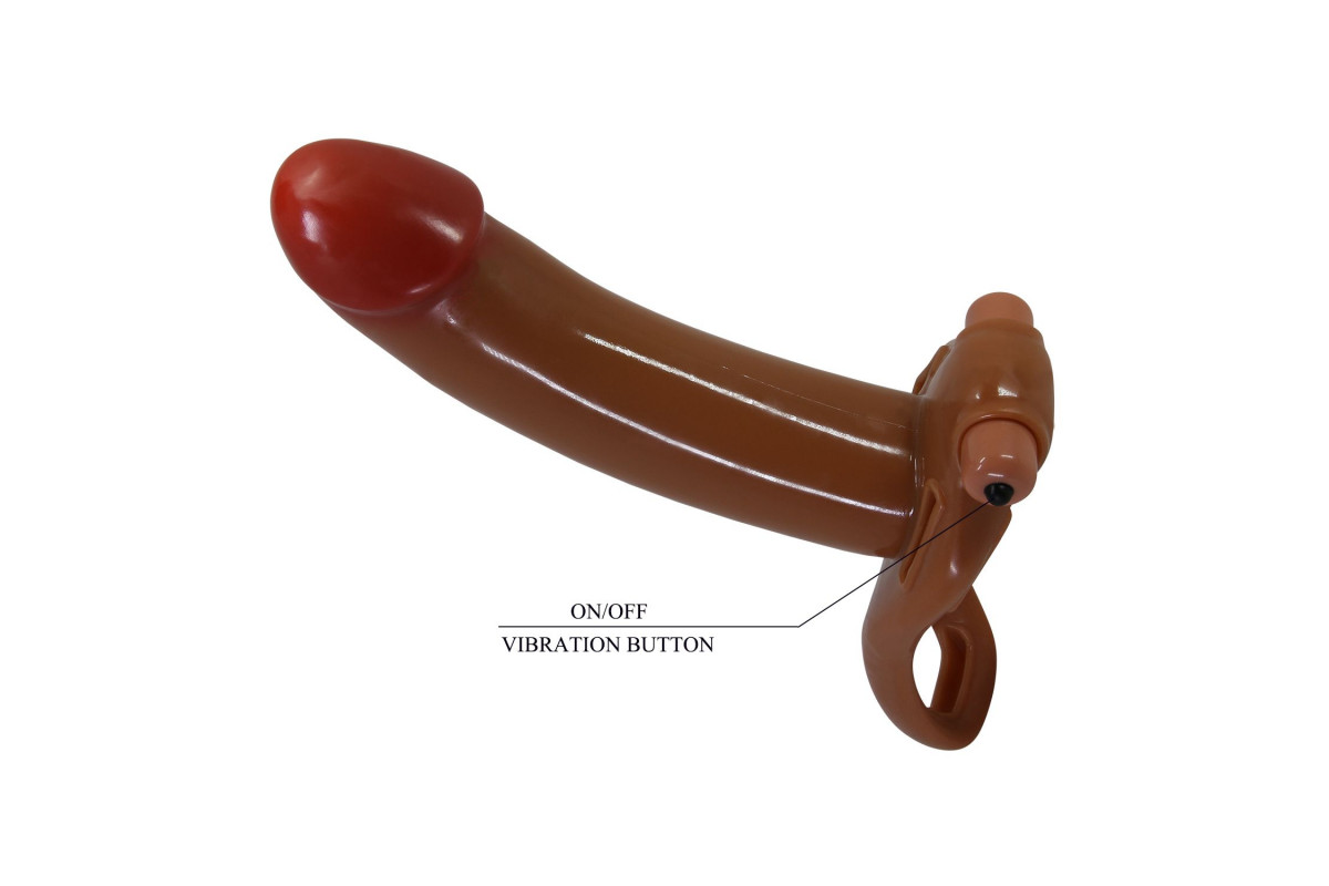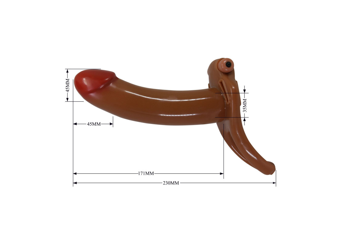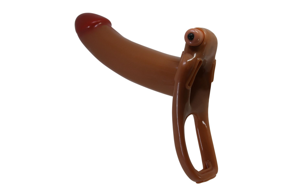 Мужской полый страпон с насадкой цвета карамели Bradden – 17,1 см