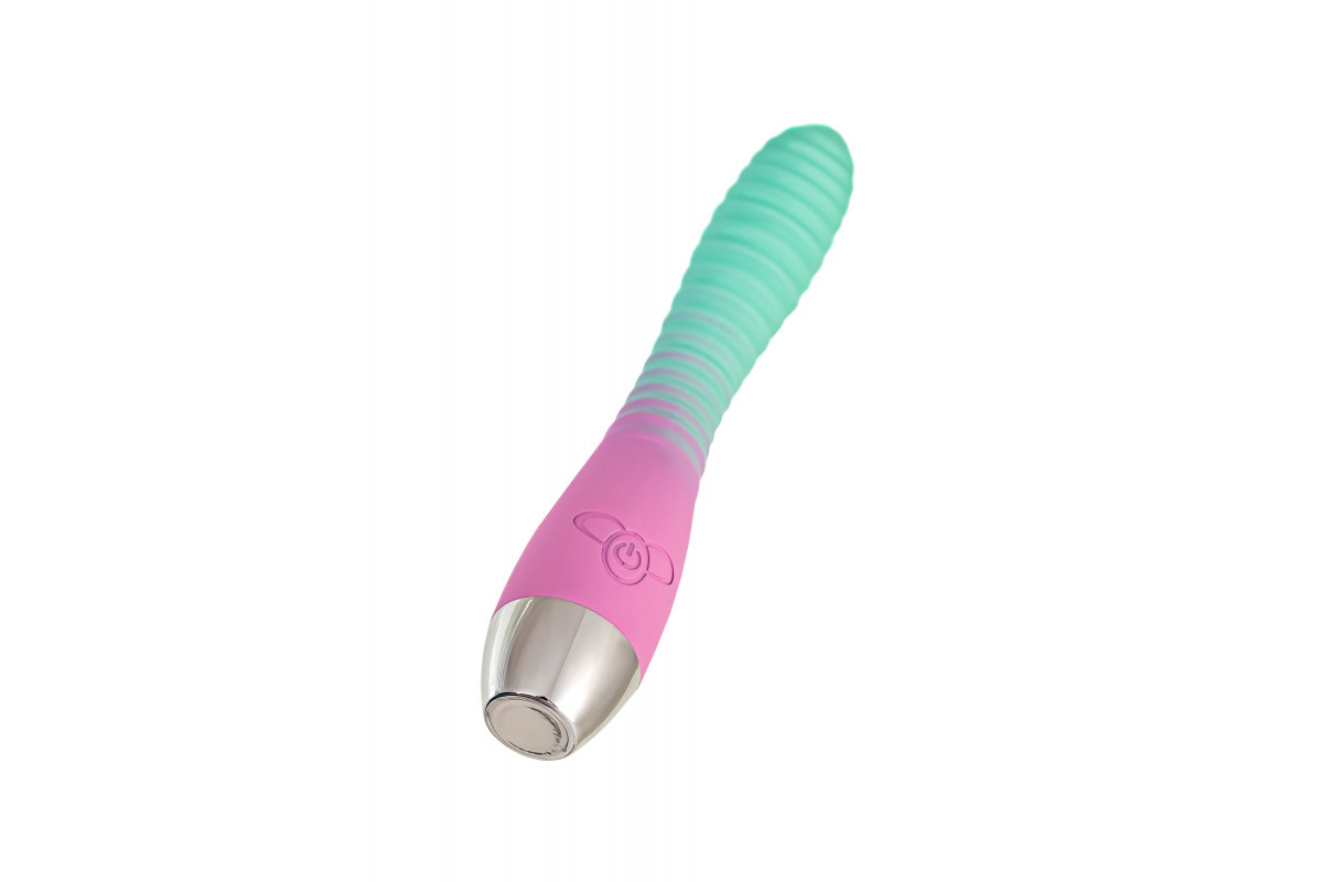 Позвольте представить Azalia от Flovetta — вибратор с плавным градиентом от нежного мятного до теплого розового оттенка, который привнесет в вашу жизнь моменты настоящего наслаждения. Этот милый вибратор классической слегка изогнутой формы сочетает элегантный дизайн и функциональность, даря каждой девушке не только эстетическое удовольствие, но и непревзойденные ощущения. Анатомический изгиб ствола создан для того, чтобы подстраиваться под ваши желания, деликатно стимулируя точку G и создавая максимальный комфорт при использовании. Azalia легко управляется всего одной кнопкой, что позволяет вам без труда выбрать один из 10 режимов вибрации для полного наслаждения. Изготовленный из высококачественного бархатистого силикона, этот вибратор обеспечивает мягкость и нежное прикосновение к коже, а его гибкость помогает максимально адаптироваться к изгибам тела, даря глубокое и приятное воздействие. Для максимального комфорта используйте лубрикант на водной основе. Вибратор заряжается с помощью магнитной зарядки, что делает его использование максимально удобным и освобождает от необходимости искать розетки или разъемы. Рабочая длина - 13,5 см.