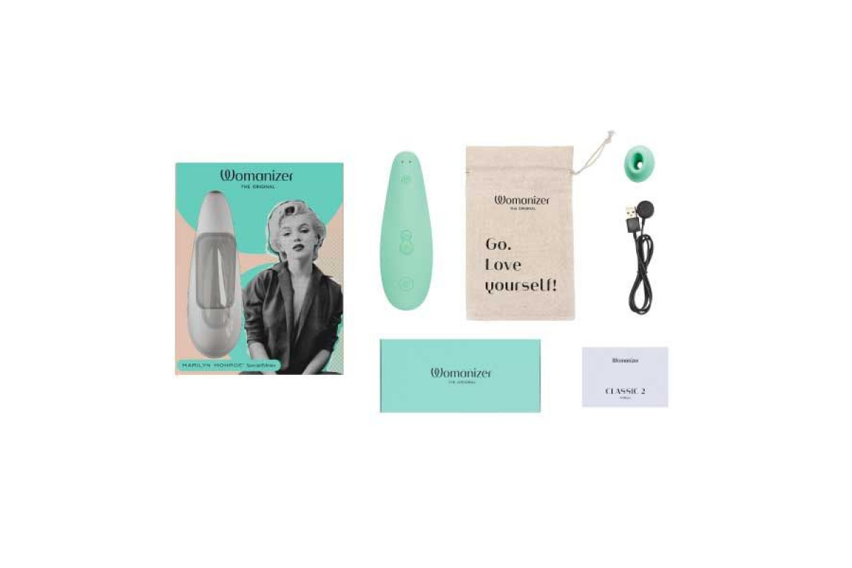 Лимитированная версия Womanizer Classic 2 Marilyn Monroe! Клиторальный стимулятор из крайне ограниченного тиража, в роскошном мятном цвете Monroe Mint придется по вкусу самым взыскательным ценительницам чувственных удовольствий.