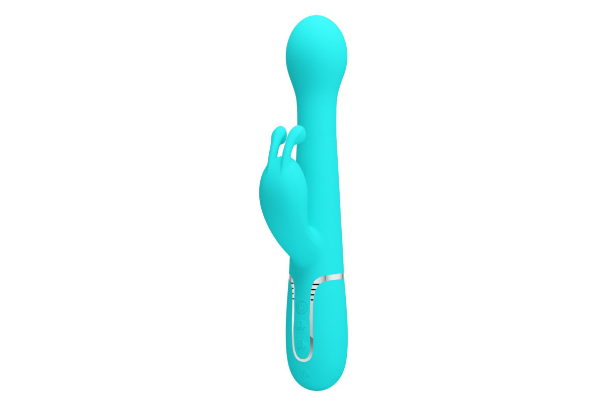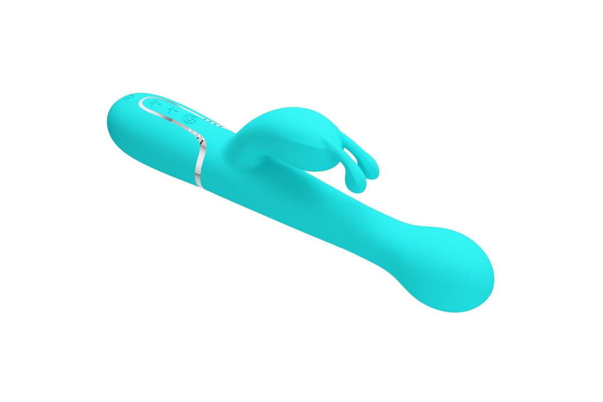 Мятный вибратор-кролик Dejon с ротацией бусин и возвратно-поступательными движениями - 22,6 см.
