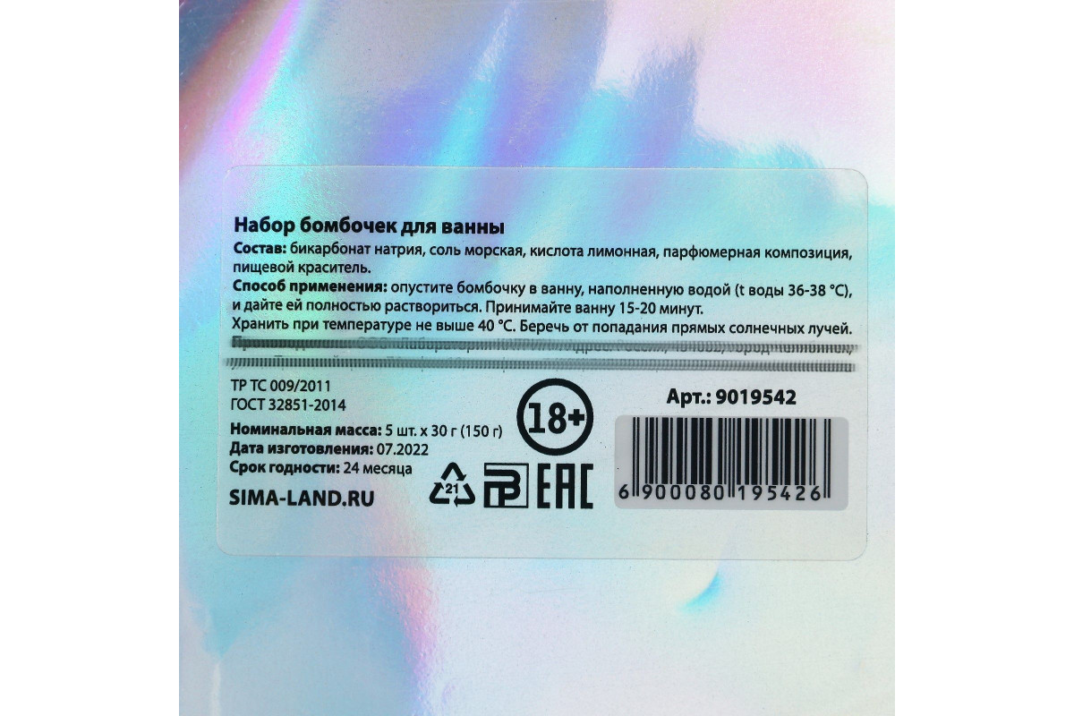 -Время принятия ванны — до 20–30 минут. В упаковке 5 бомбочек по 30 гр. каждая.