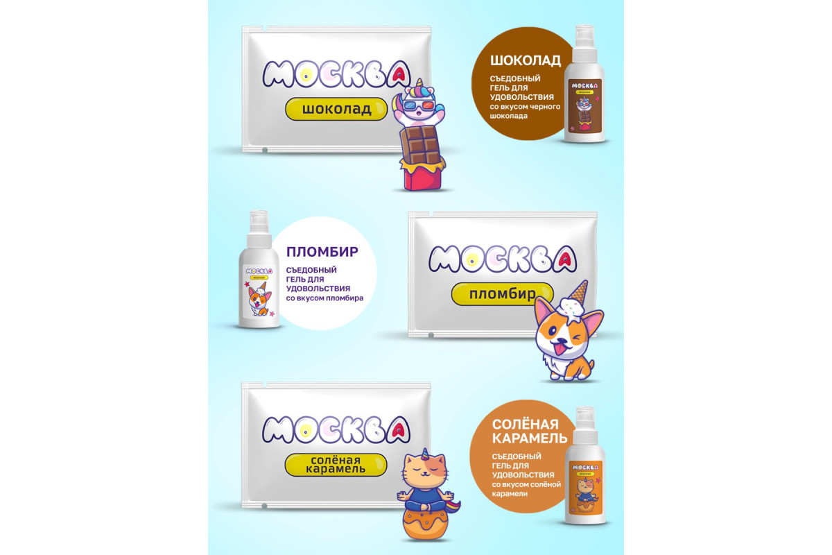 В наборе 9 удобных саше с ароматами: соленой карамели, шоколада, пломбира, клубники, персика-манго, арбуза, банана, вишни, дюшеса. А также 2 саше для классического и анального секса: Влажная на водной основе и Скользкая на силиконовой основе