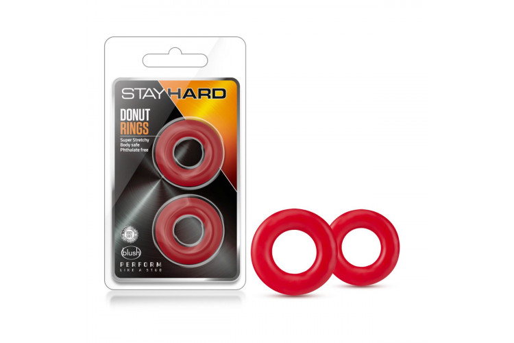 Набор из 2 красных эрекционных колец Stay Hard Donut Rings – интенсивное наслаждение и комфорт