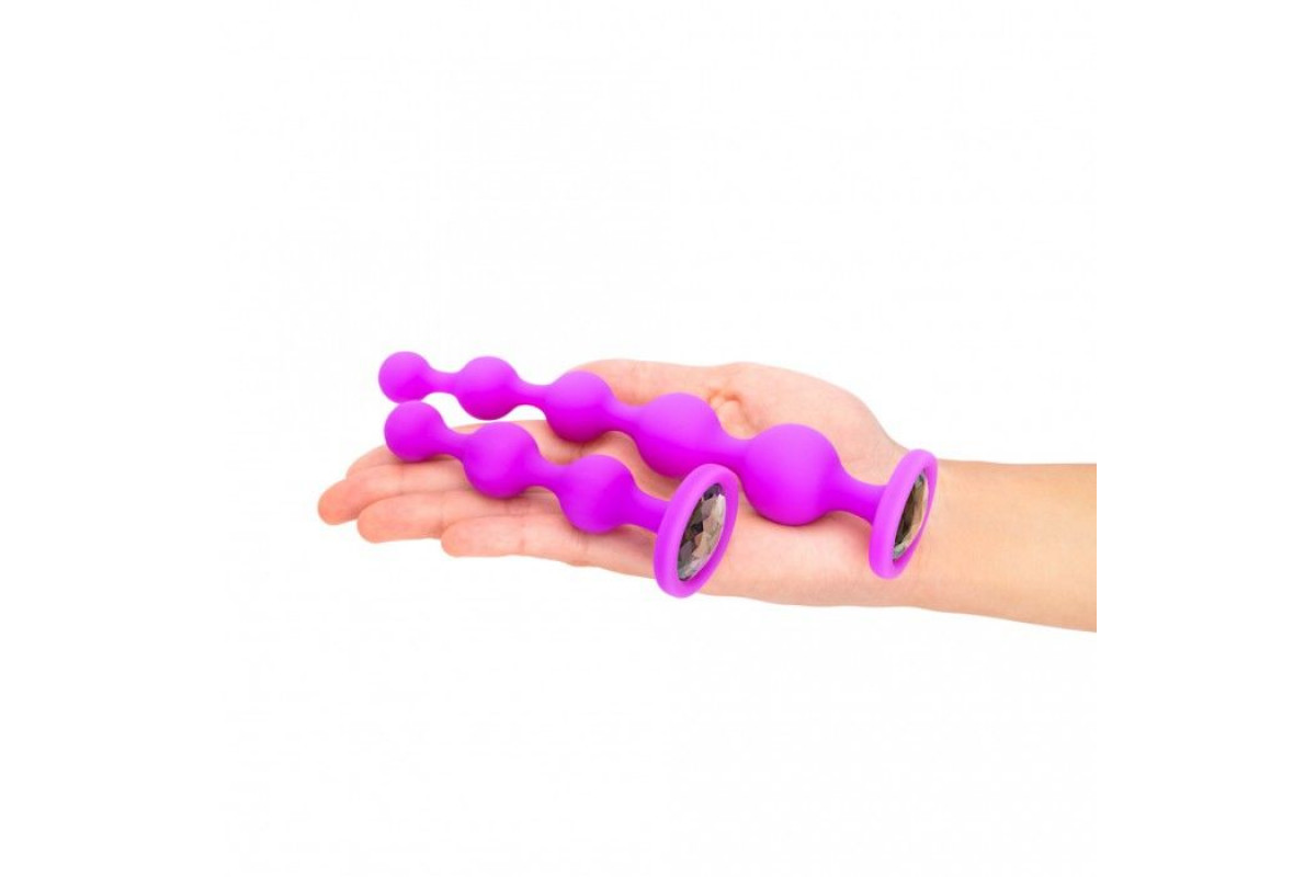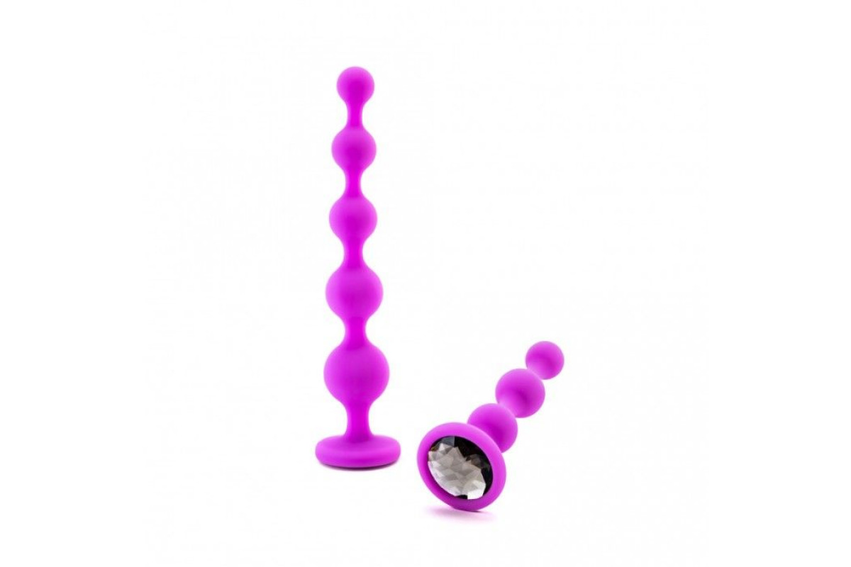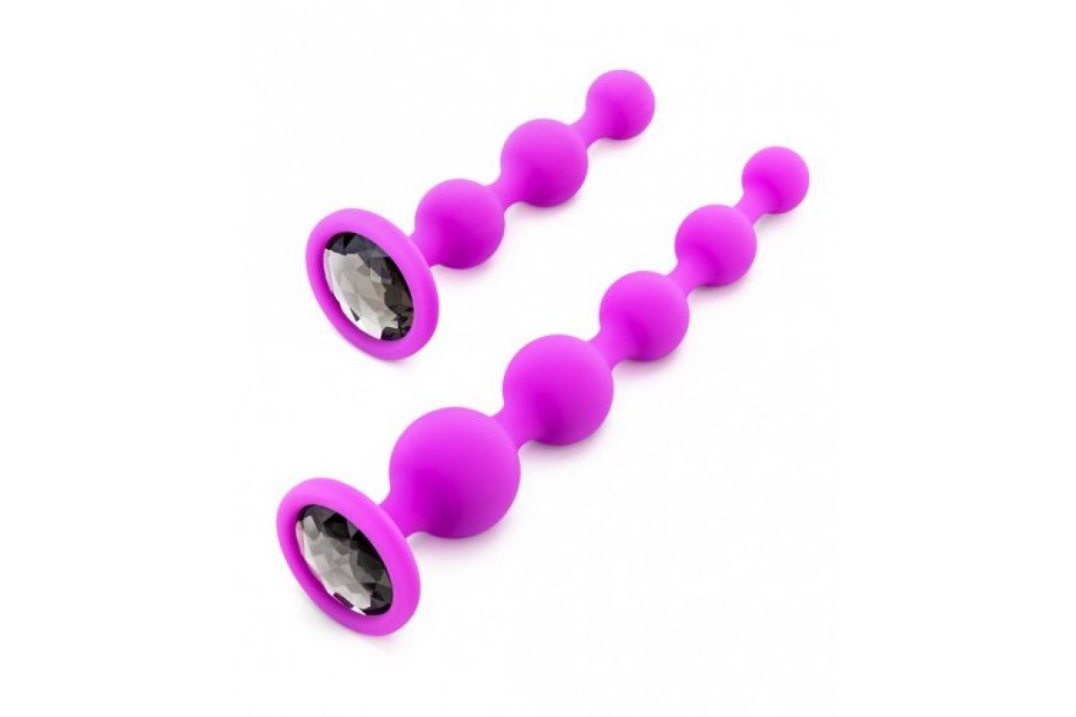 Набор из 2 лиловых анальных цепочек с кристаллами в основании