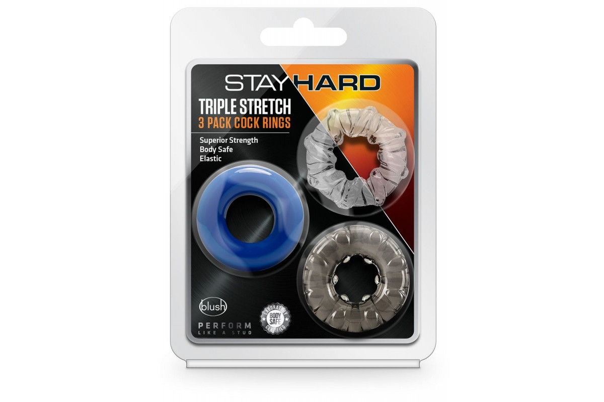 Набор из 3 эрекционных колец Triple Stretch 3 Pack Cock Rings — усиление и удовольствие