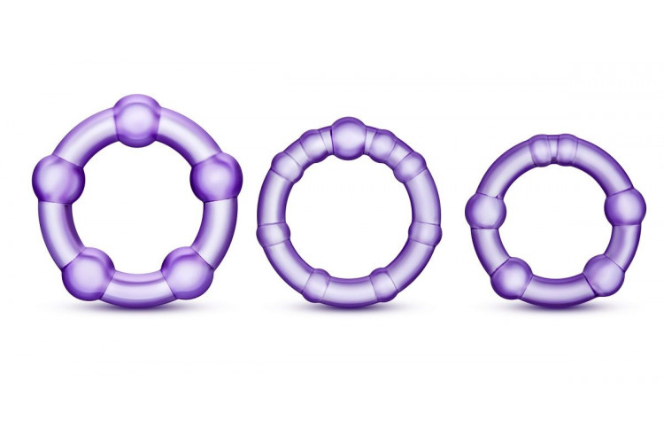 Набор из 3 фиолетовых эрекционных колец Stay Hard Beaded Cockrings