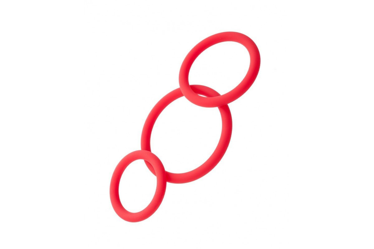 Набор из 3 красных эрекционных колец различного диаметра — усиление ощущения и новые возможности для двоих