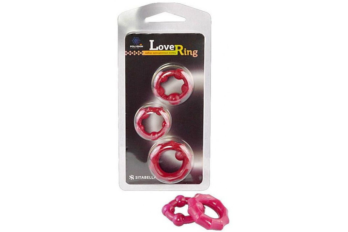 Набор из 3 малиновых рельефных эрекционных колец