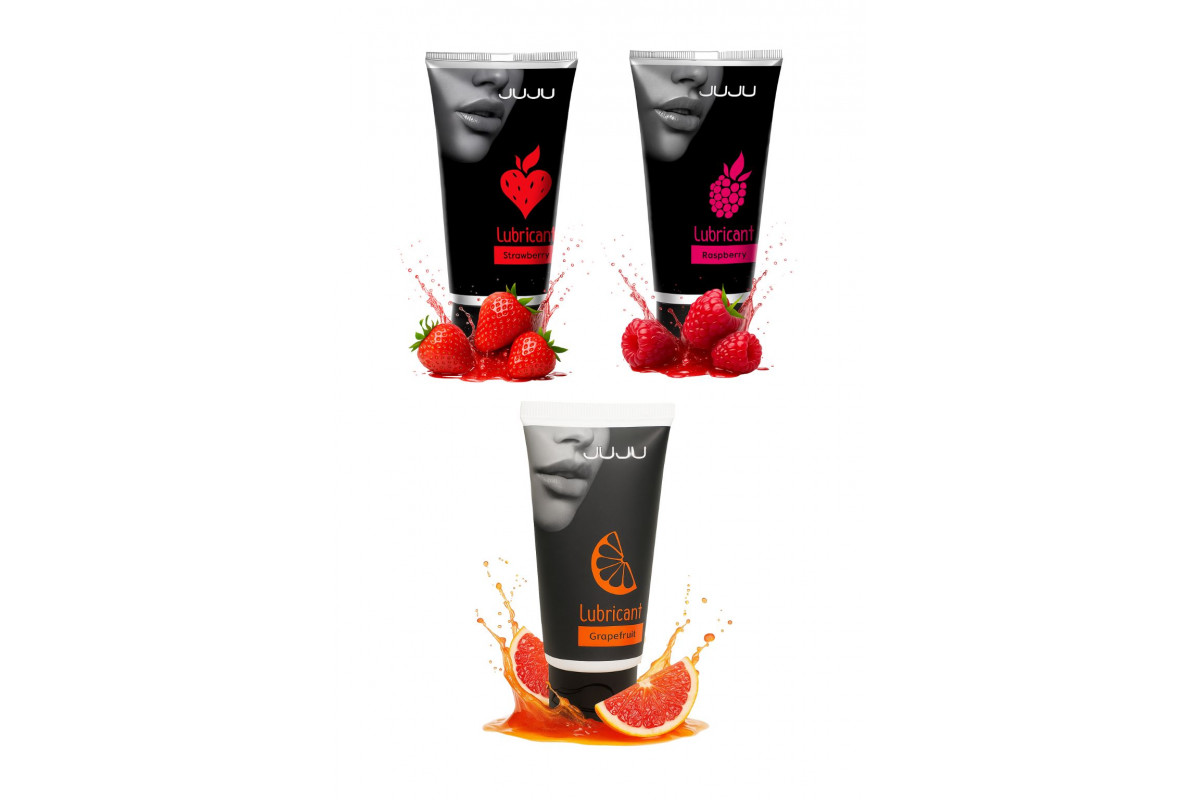 Откройте для себя новые ощущения с нашим уникальным набором съедобных лубрикантов JUJU. Этот комплект включает три восхитительных вкуса — клубника, малина и грейпфрут, которые добавят ярких красок и сладости в ваши интимные моменты.