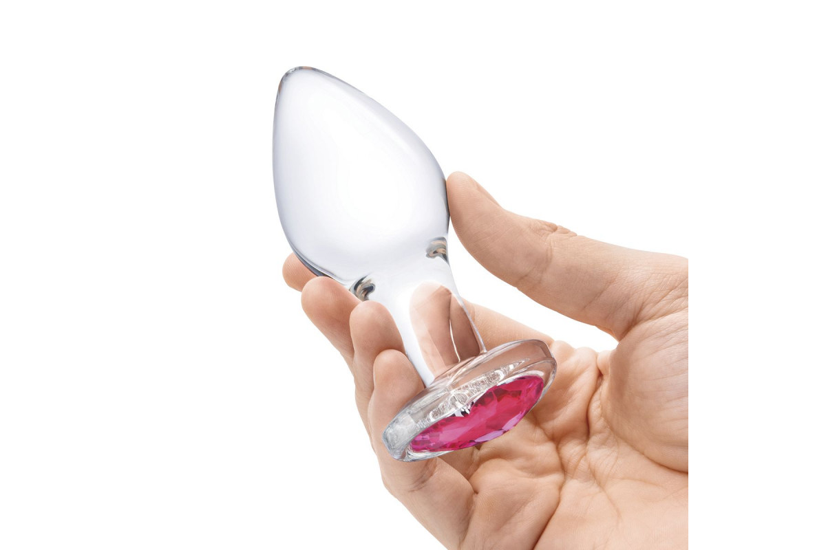 Этот анальный тренировочный набор умело проведет вас через процесс тренировки вашего тела для более приятного анального опыта. Эти три пробки изготовлены из гладкого прочного стекла и имеют градуированные размеры, чтобы облегчить вам этот тип стимуляции. Каждая из них имеет сужающийся кончик, облегчающий введение, и плоское расширяющееся основание, которое удобно удерживает плаг на месте. Вы можете начать с самого малого размера, используя постепенно все больший размер. Красное сердце-кристалл в основании плага добавляет элегантности каждому стимулятору, но при этом набор достаточно компактен для путешествий или хранения, тем более, что в комплекте вы найдете сатиновый белый мешочек с голубым логотипом. Длина большой пробки - 8,3 см, диаметр - 3,9 см.